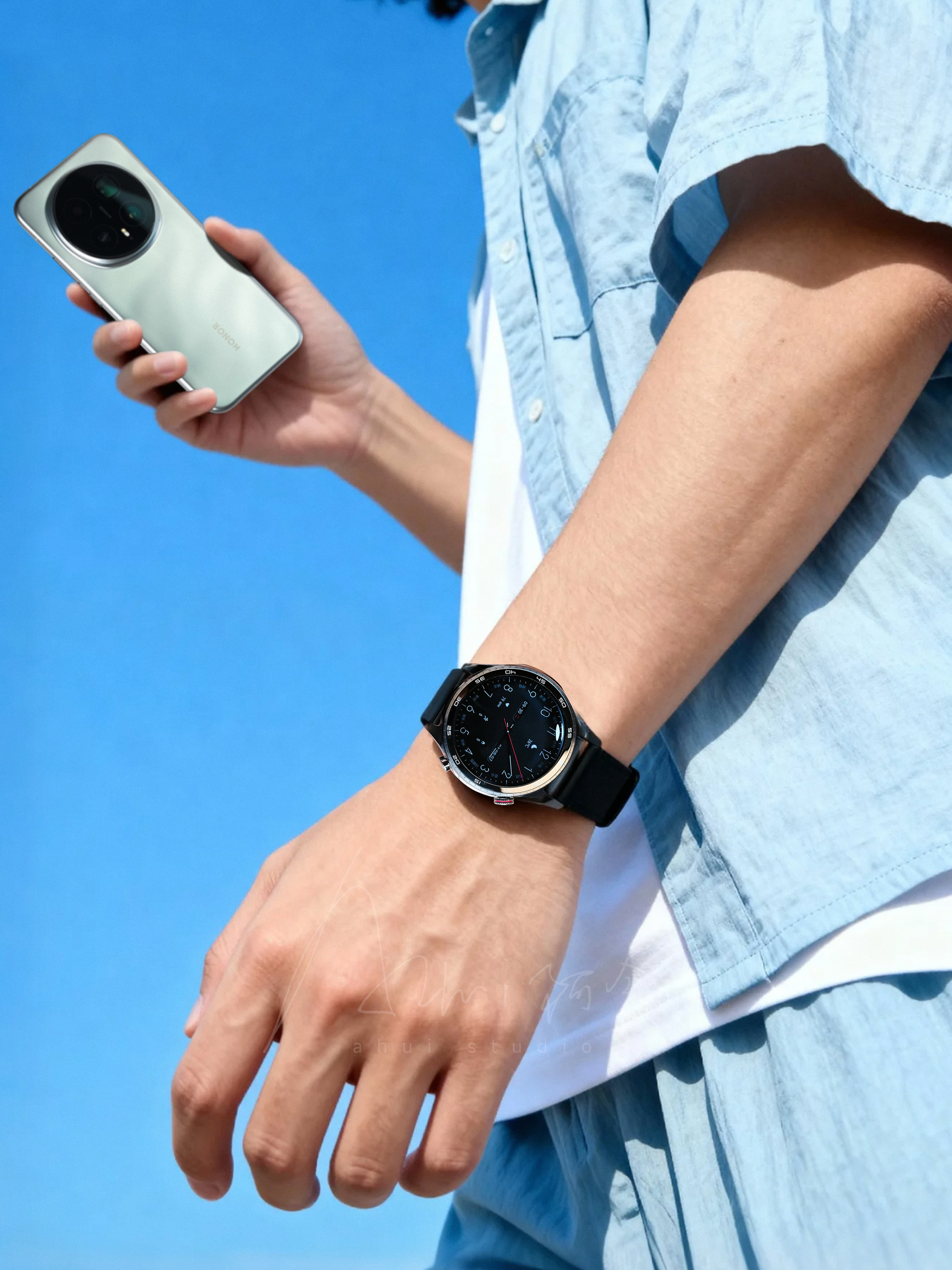 但其实,我更想夸的是这次的质感、手感、还有全新的UI设计,是那种上手贼舒服,开屏就不舍得关的那种状态,真心的,如果上手过,相信你会感觉这就是第一梯队的工艺水平。当然啦,这次其实除了手机,手表也是非常重磅的新品,这里给大家先实拍感受下这满满的高级感 荣耀手表5 Pro会拍
