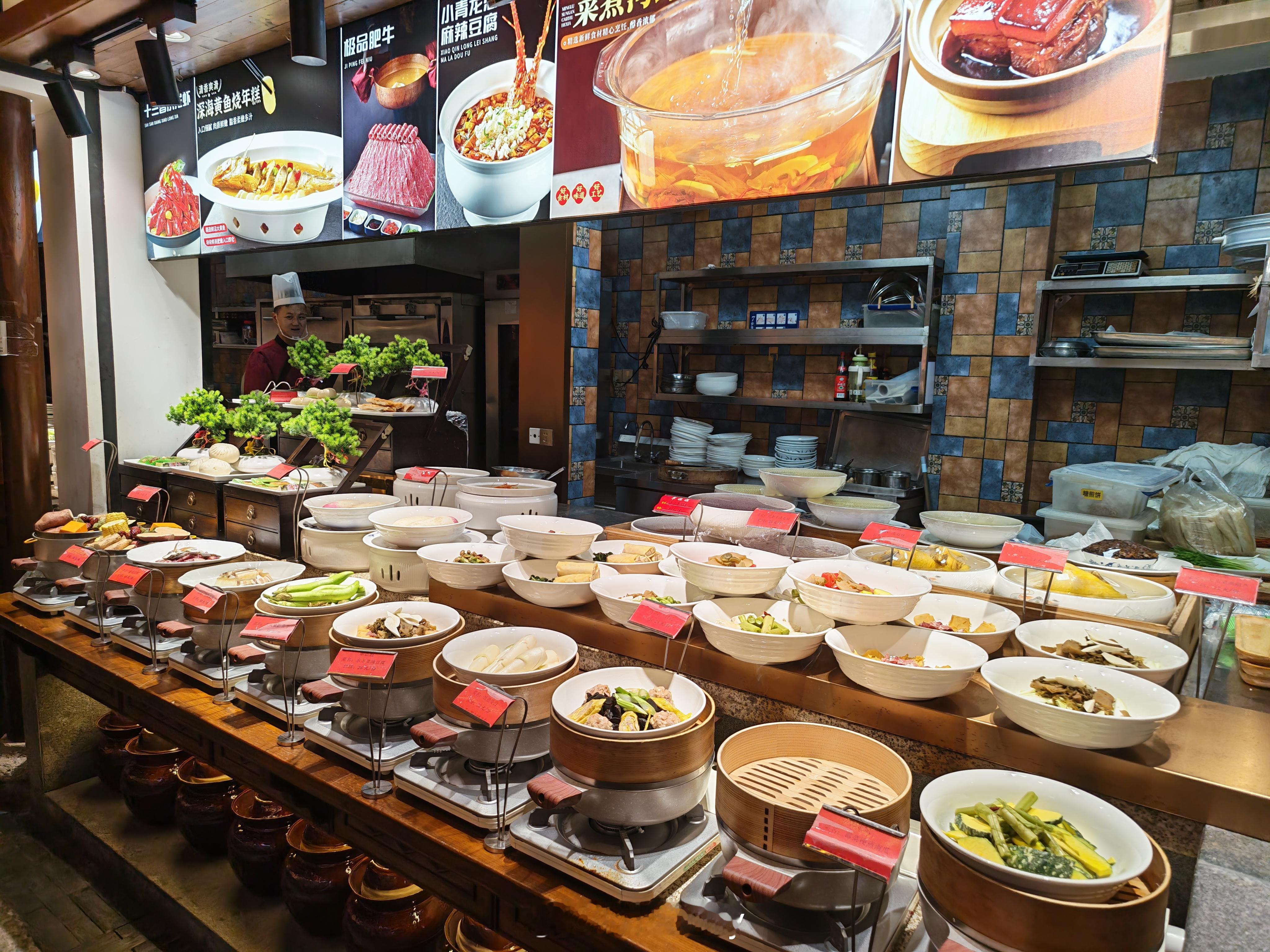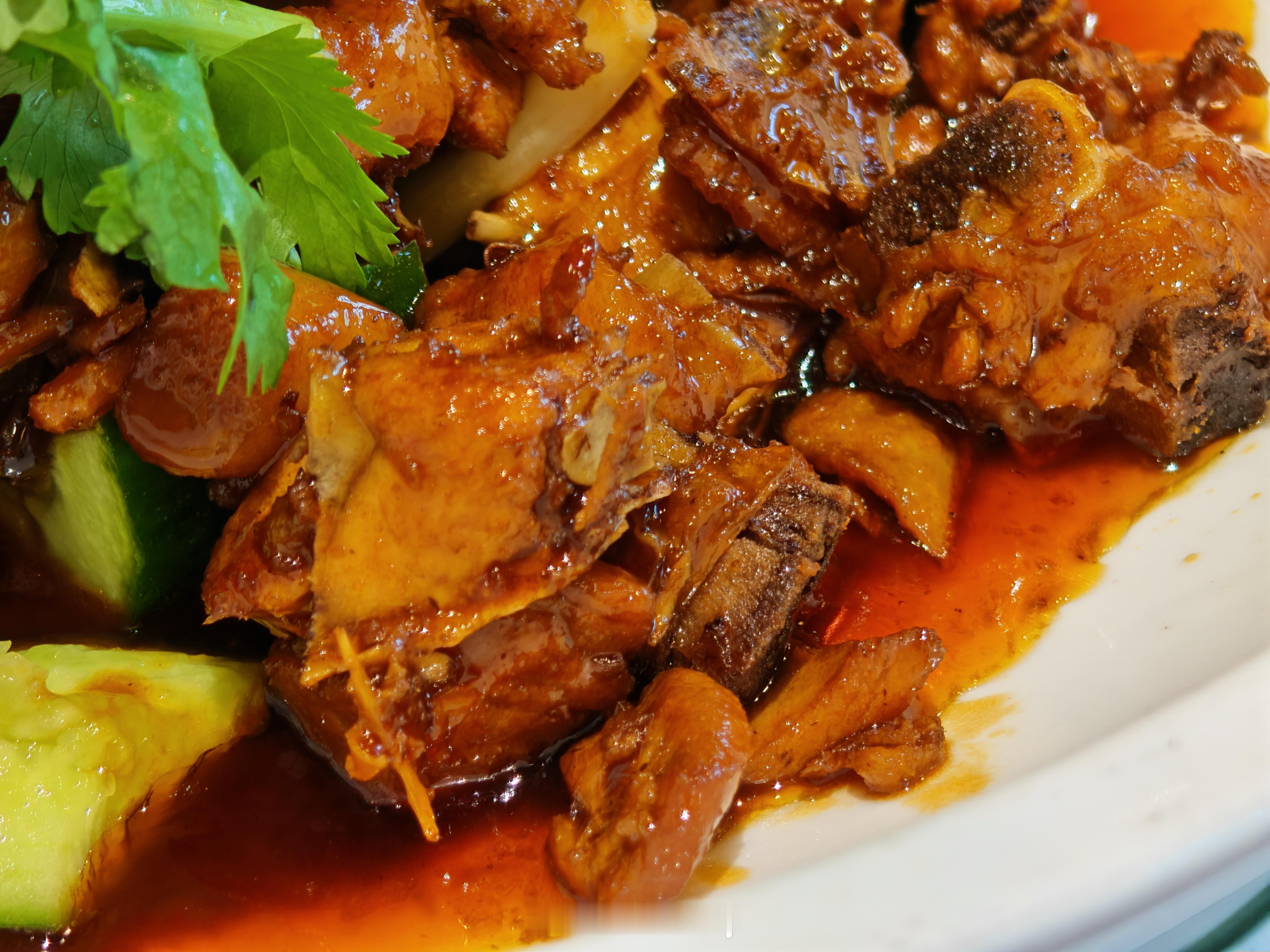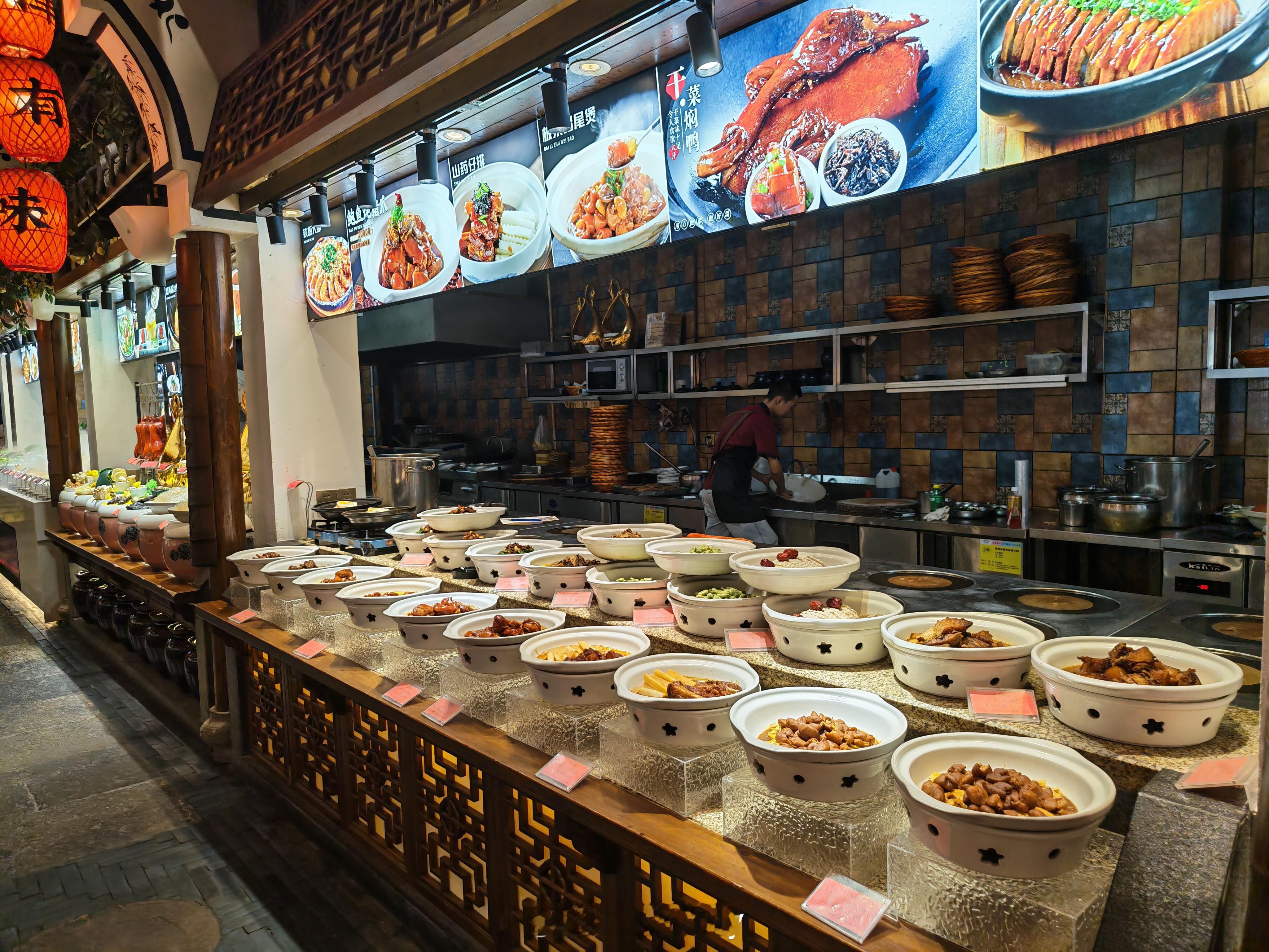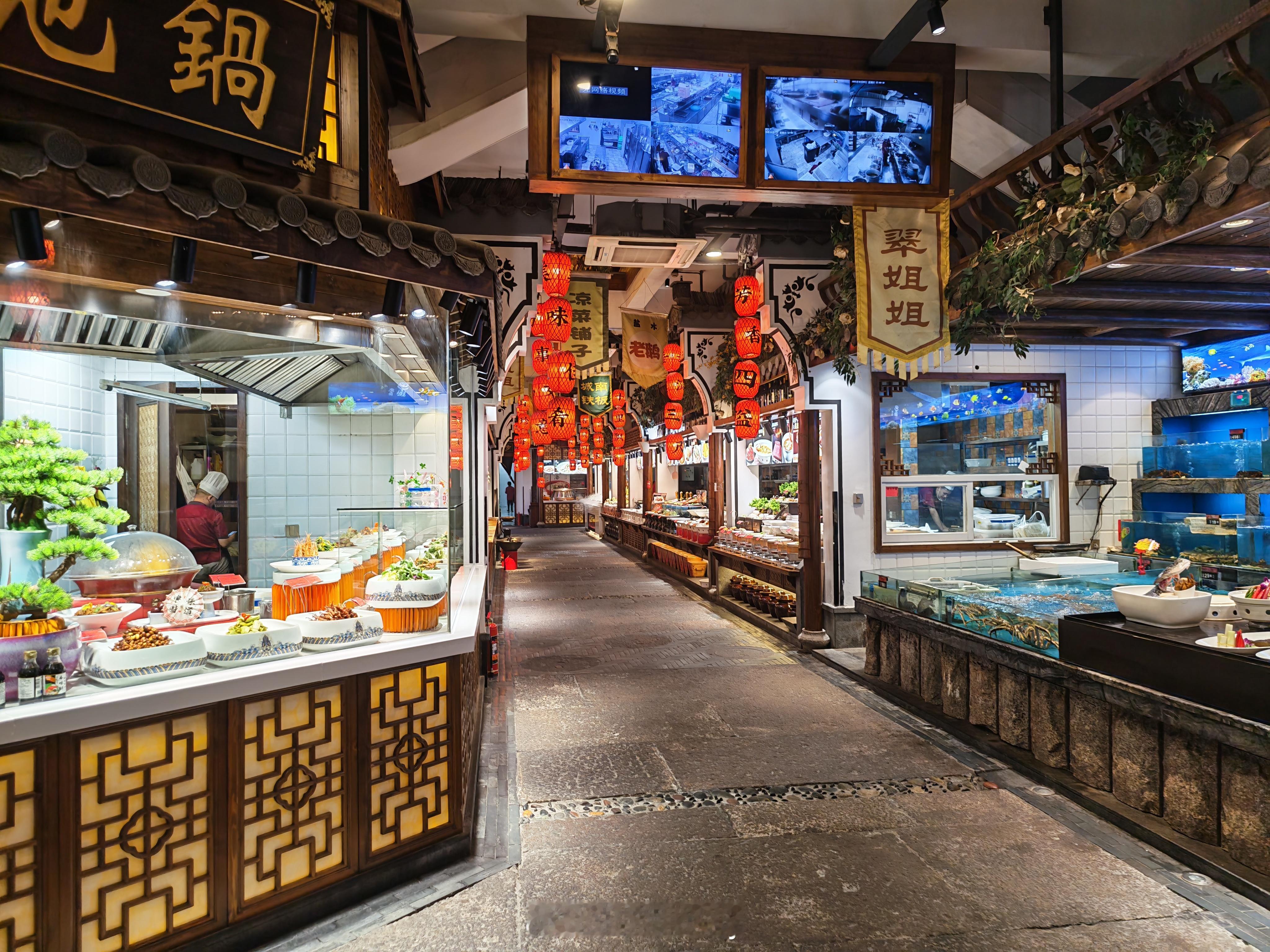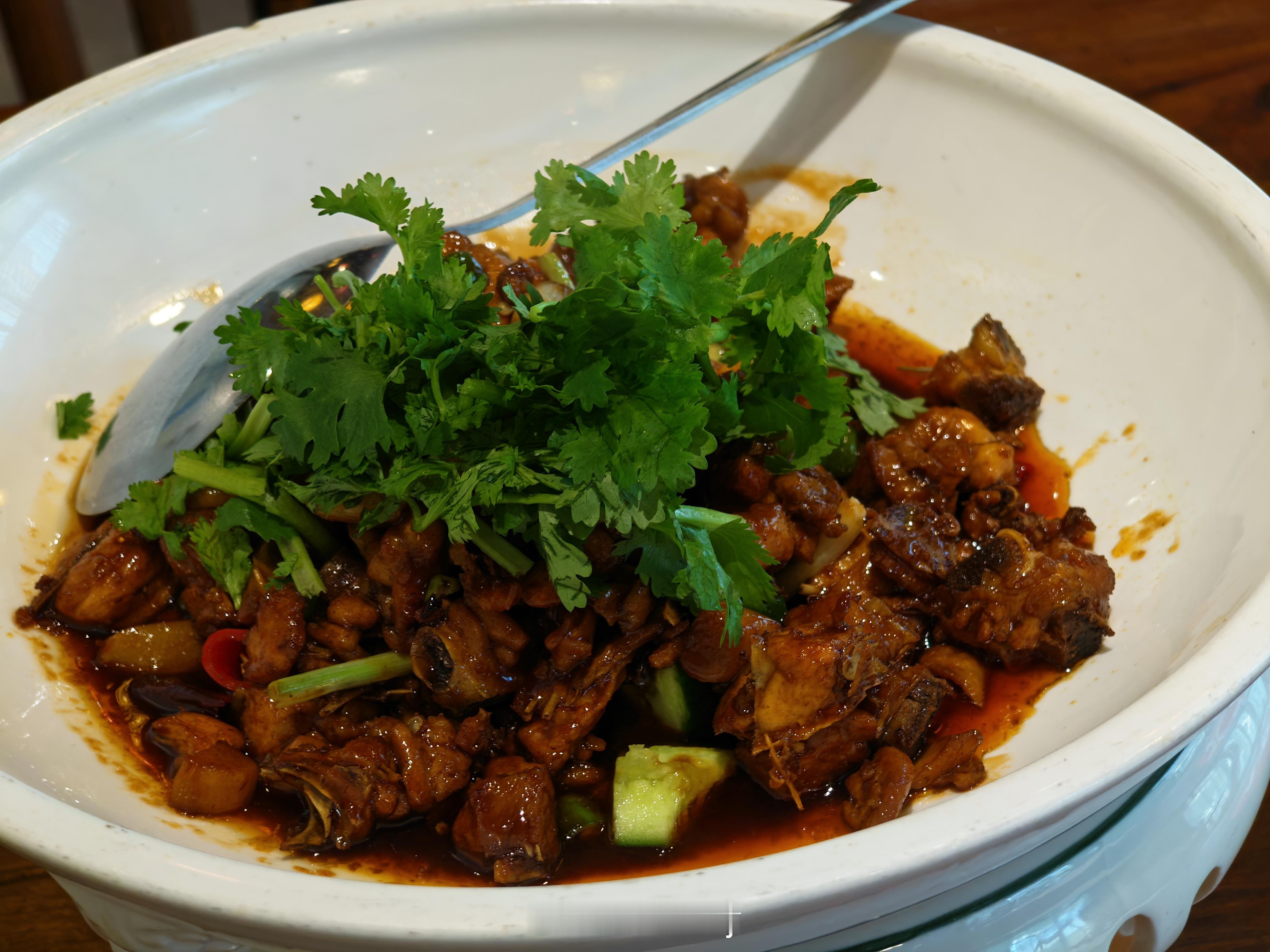 感觉杭州的餐馆装修都特别好,今天吃了甜口的炒鸡。[抱一抱]