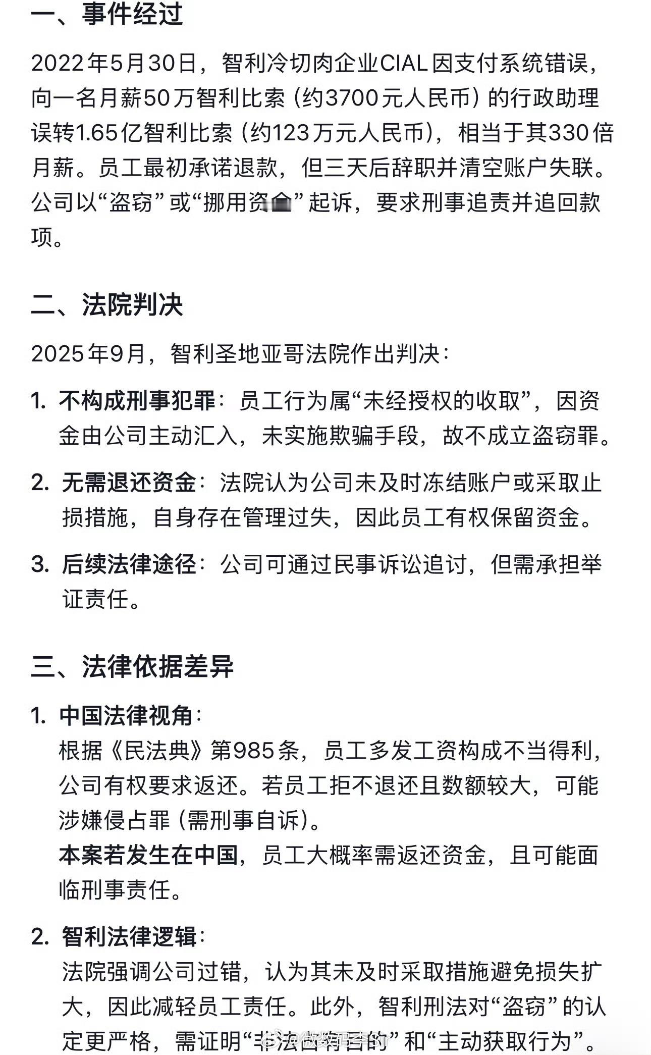 公司错发1.65亿工资员工被判不退款