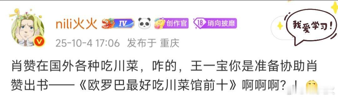 ——你俩合著的《欧罗巴最好吃川菜馆前十》稿子写很厚了吧!! [笑cry][笑cry][笑cry]