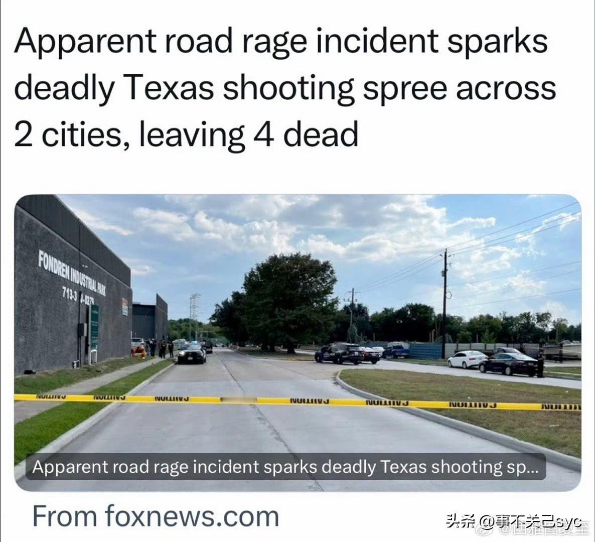 Texas (德克萨斯州)公路上发生冲突,演变成凶杀:其中一名司机先开枪打死一名女性,后打死一名男性,又打死一名目击者,最后饮弹自尽 警方没有公布枪手和受害者身份,但下结论:“显然是road rage”路怒 ——驾驶者因其他驾驶者的恼人行为而引发的失控愤怒。 近一段时间以来,美国恶性暴力枪杀事件显著增多,为什么? 社会撕裂与极端主义是不可或缺的因素:政治对立、意识形态分歧、极右翼白人至上主义、大规模遣返驱赶非法移、高关税引发的高物价等,在社交媒体上被放大,加剧了社会仇恨,一些极端分子会选择用暴力手段表达诉求。 由于宪法障碍、政治极化和社会文化的根深蒂固,美国很难在联邦层面出台颠覆性的控枪法案。因此,这种恶性暴力事件的频发,恐怕仍将是美国社会一个长期而痛苦的现实。