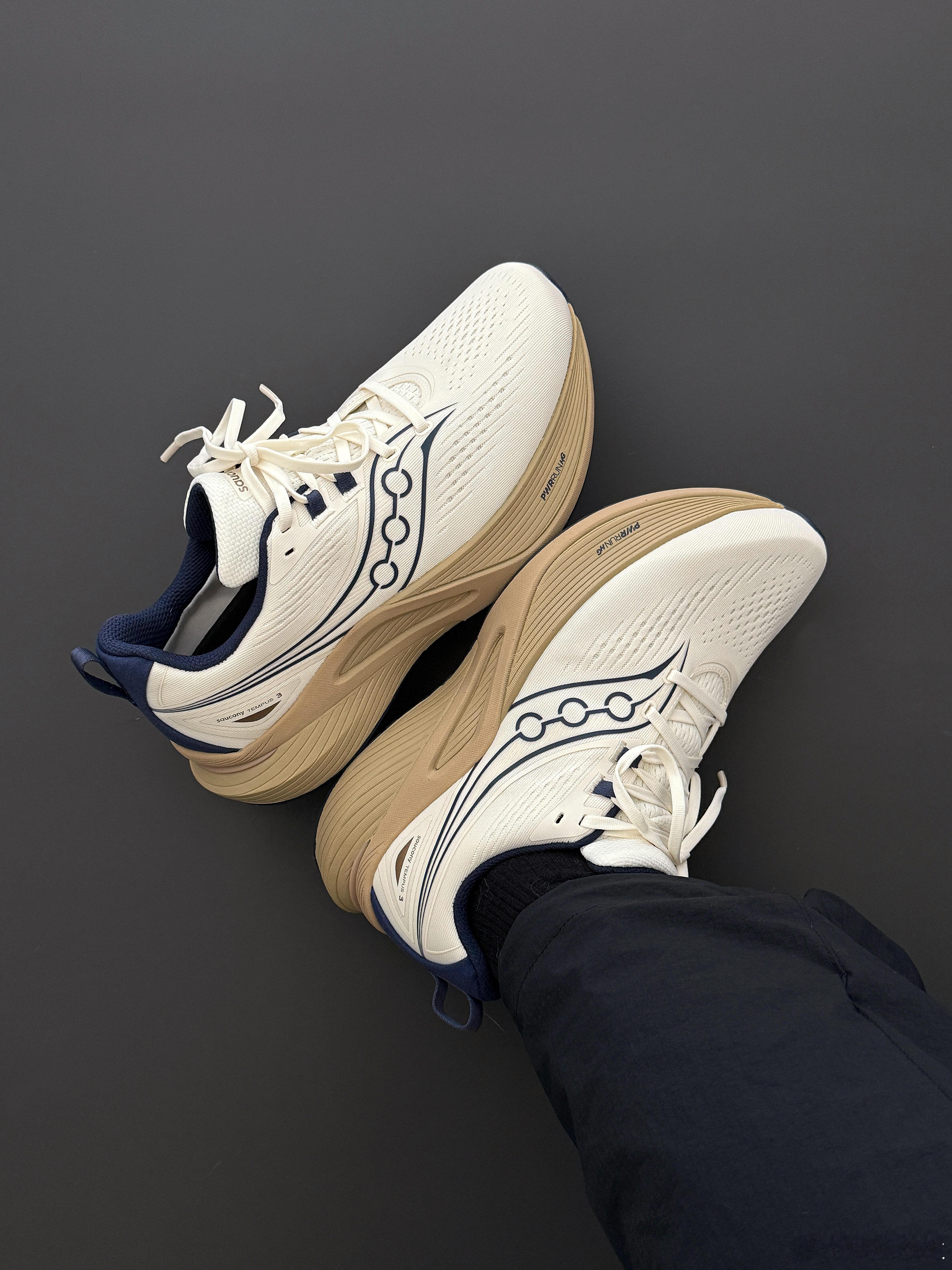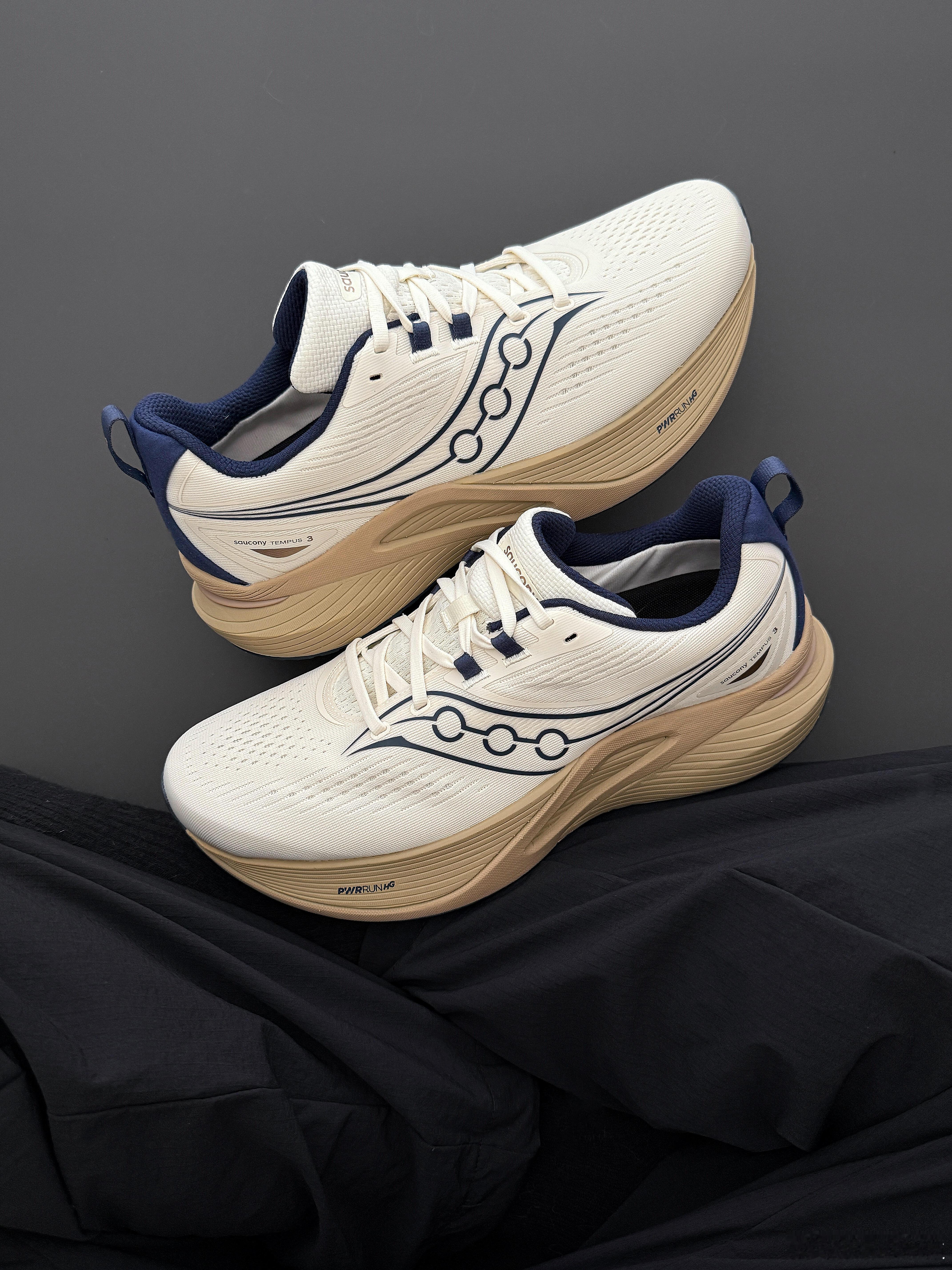 这双运动鞋以纯白色透气网眼材质构筑鞋身,营造出极简的现代美感与出色的清爽脚感。其设计亮点在于细节的巧妙点缀:深蓝色线条勾勒出流畅的鞋身结构,而鞋侧醒目的浅棕色PWRRUN+ HG中底,则昭示了其内置的高性能缓震科技,旨在为每一步提供充沛的能量反馈。