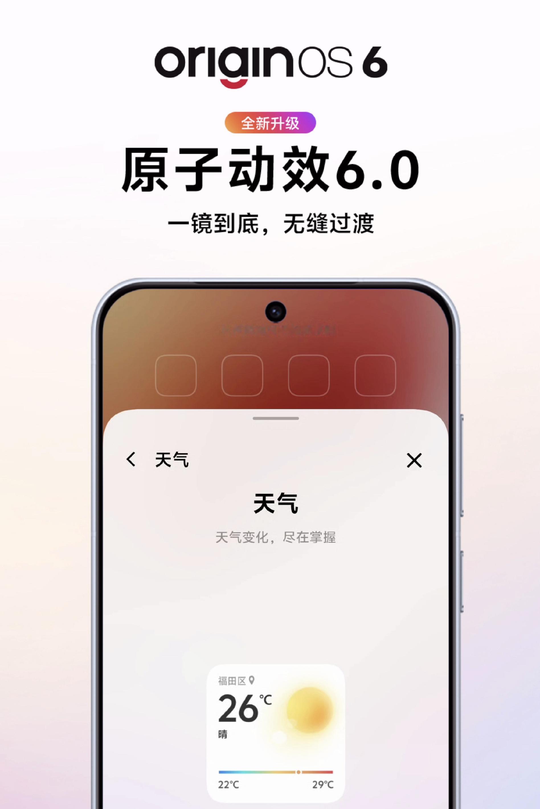 全新OriginOS6发布 这次系统升级主打艺术感十足的设计和无卡顿的极致流畅体验,通过超核计算、双渲染架构、光子存储三大技术重构安卓核心系统,让每一个操作都如行云流水,真正实现「流畅舒适 6到飞起」。可以说即便是高频使用,都让你感受丝滑般顺畅。