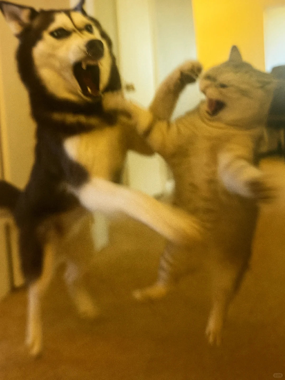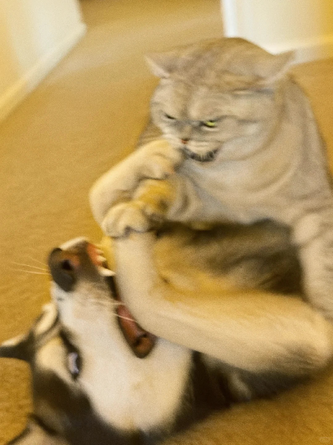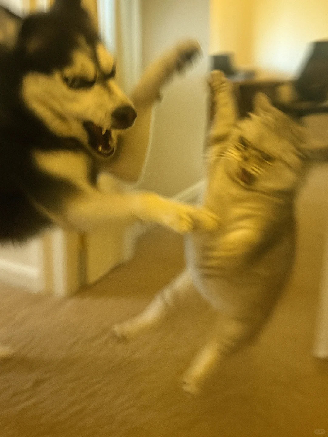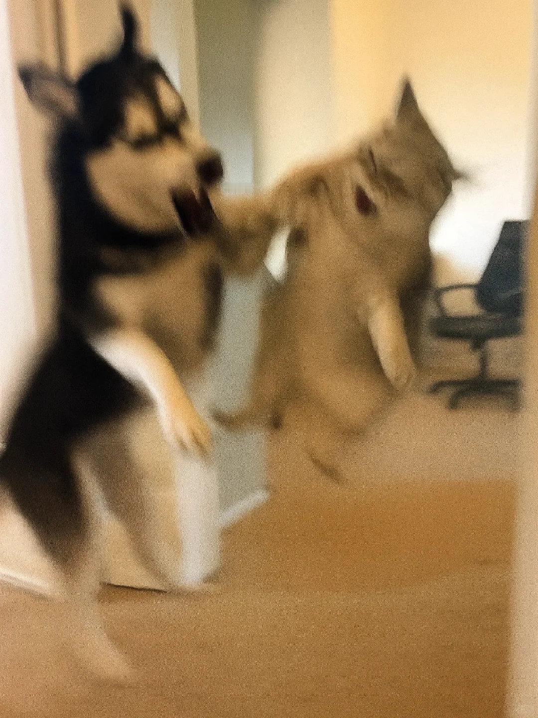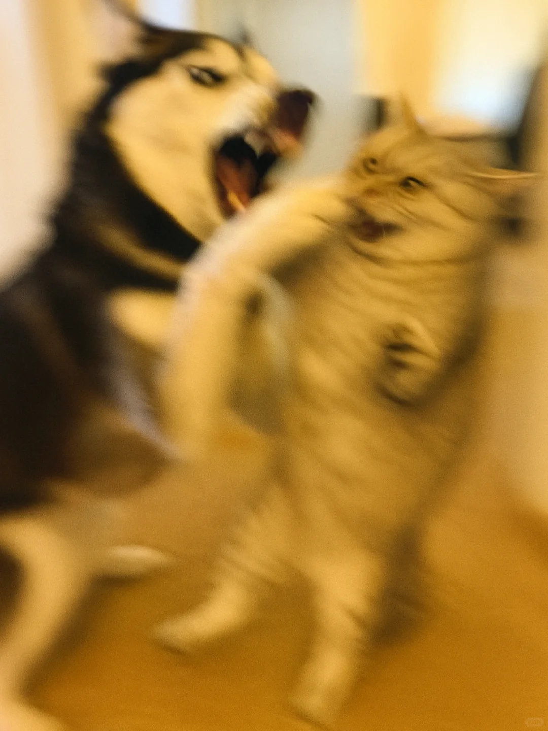 家人们谁懂啊!哈士奇和银渐层打起来啦![哭笑] 这俩活宝追着满屋跑,爪子挥得比谁都带劲~ 姨姨们快来看热闹,需要情头的速来截,主页还有橘猫、蓝白等打架名场面!你觉得谁会赢? ​​​