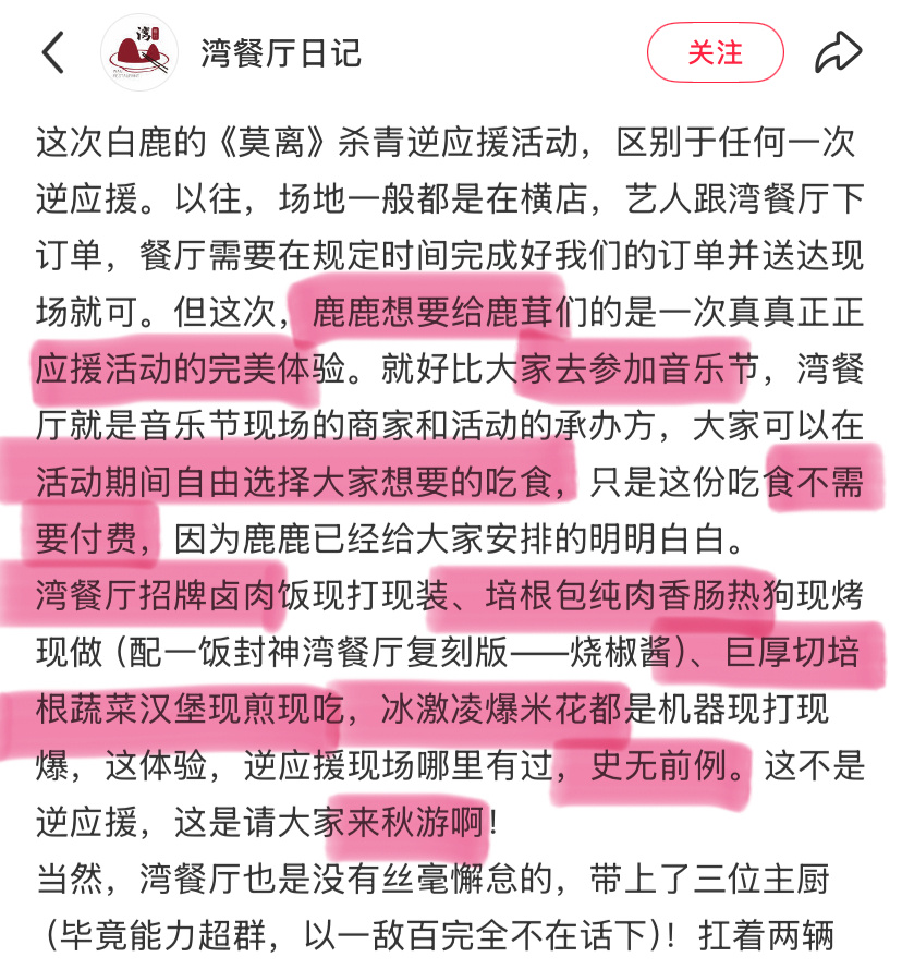 “去白鹿《莫离》杀青应援现场,去叶璃杀青秋季游园会,去象山鹿茸专供自助餐厅,去白鹿粉丝线下文创市集,去象山影视城飞车广场”