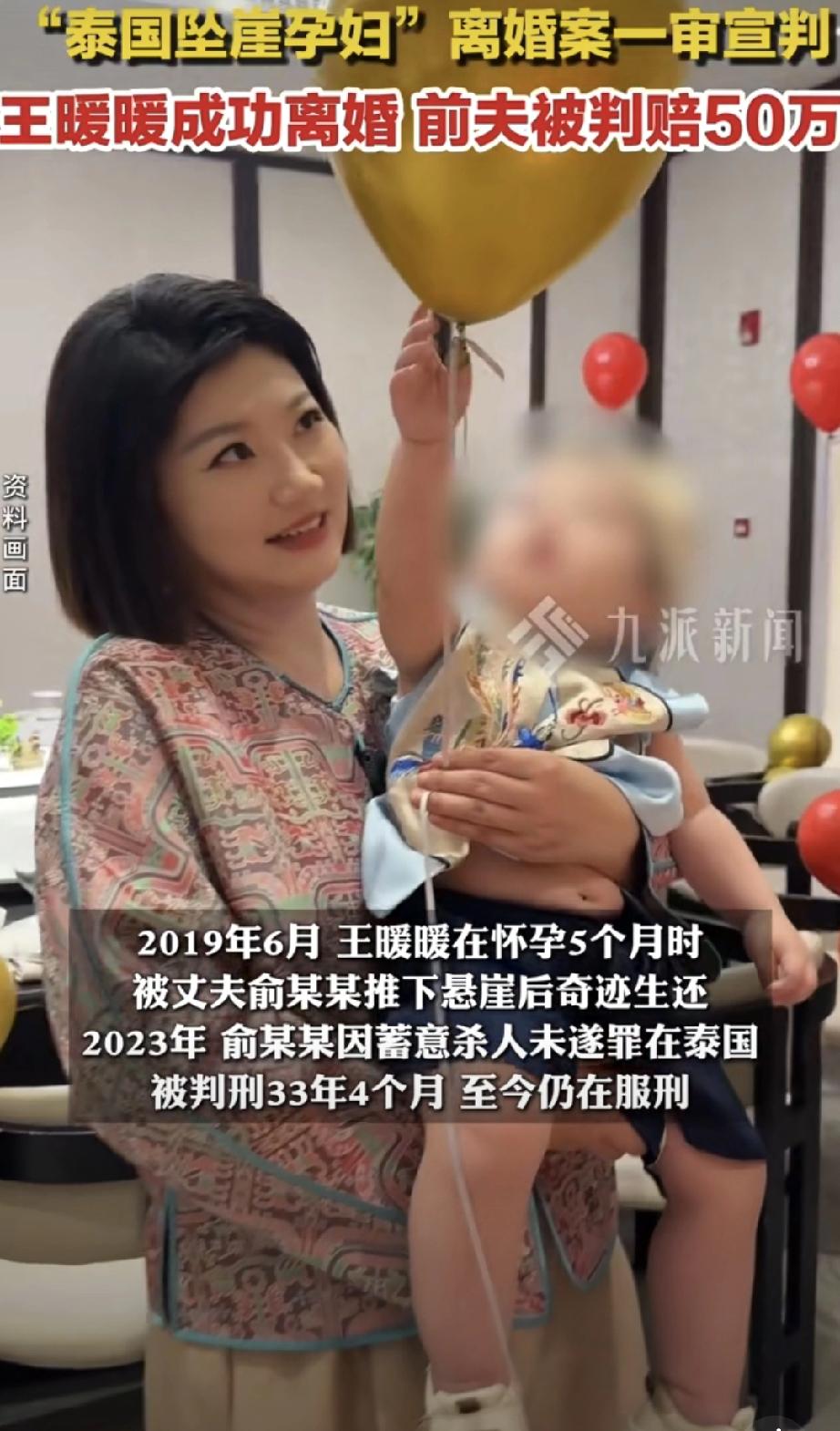 王暖暖终于成功离婚了!前夫俞某冬被判赔她50万元,这场持续六年的噩梦总算画上句号。 回想2019年,当时怀有身孕的王暖暖在泰国被丈夫从34米高的悬崖推下,全身17处骨折,在ICU抢救了8天才活下来。真不知道她这六年是怎么熬过来的。 今年9月26日,这起特殊的离婚案在南京开庭。说它特殊,是因为俞某冬还在泰国坐牢,成了国内首例被告在国外服刑的离婚案。法院通过视频让他参加了庭审,也是挺不容易的。 最让人无语的是,都到这地步了,俞某冬最关心的居然是能分到多少钱。王暖暖透露,前夫一直通过律师追问她有多少财产可以分,甚至曾索要3000万离婚费。幸好法律是公正的,法院认定王暖暖的财产大部分是婚前的,俞某冬根本没资格分。 这六年王暖暖真的坚强。去年9月她通过辅助生殖技术生了宝宝,虽然因为还没离婚,给孩子上户口遇到了点麻烦,但总算解决了。今年7月她还出了新书《重生》,讲述自己的经历。看她最近发的视频,和宝宝在一起的她终于露出了笑容,配文说:“爱是最伟大的魔法。” 现在,王暖暖终于在社交媒体上宣布:“众望所归,终于等到了这一天。”网友纷纷留言祝贺:“恭喜暖暖!”“新生活开始了!” 确实,34米高的悬崖和17处骨折都没能摧毁她,往后余生,一定会越来越好。 秋日领花茶我领到了秋日限定花茶:两情若是长久时,又岂在朝朝暮暮戳这里👉快来领取你的专属花茶,分2万元奖金!! 王暖暖 王暖暖事件