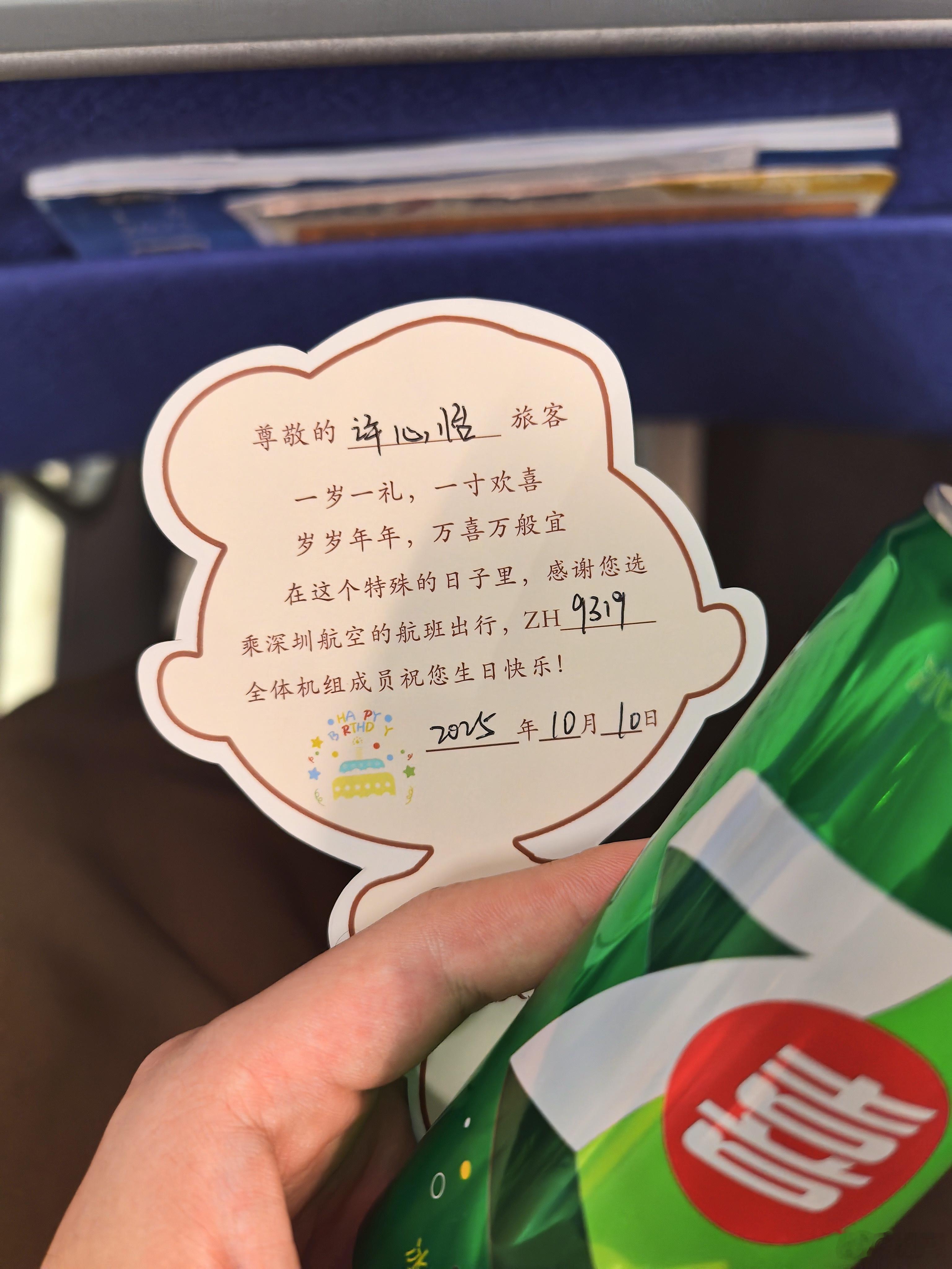深圳航空的空姐递给我一瓶饮料,才想起来今天生日(当然一般过农历),刚落地,回去继续工作[泪奔]