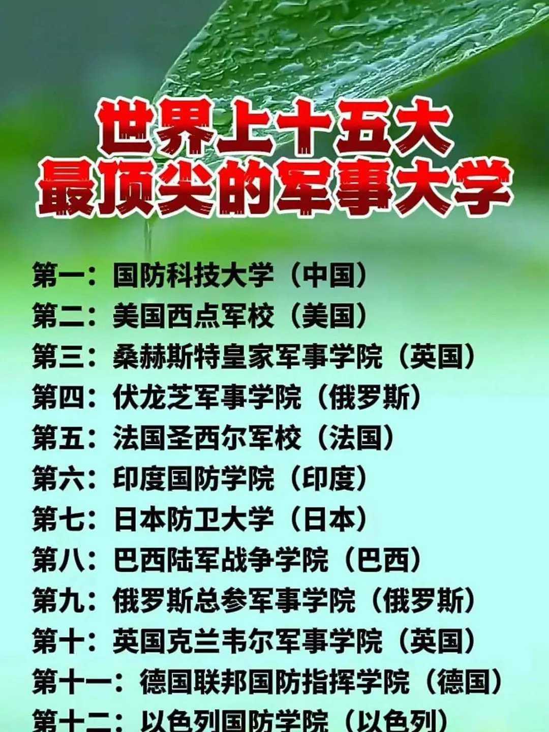 世界上最顶尖的军事大学排名一直备受关注。排名第一的是中国的国防科技大学,它实力强劲,为我国培养了众多军事人才。美国西点军校排第二,历史悠久,培养出不少名将。英国的桑赫斯特皇家军事学院位居第三,在国际军事教育界声誉颇高。俄罗斯的伏龙芝军事学院和总参军事学院也分别位列第四和第九。法国圣西尔军校、印度国防学院、日本防卫大学等也都榜上有名。这些军事大学在军事理论、战略战术等方面各有专长,为各国军队输送了大量优秀人才。