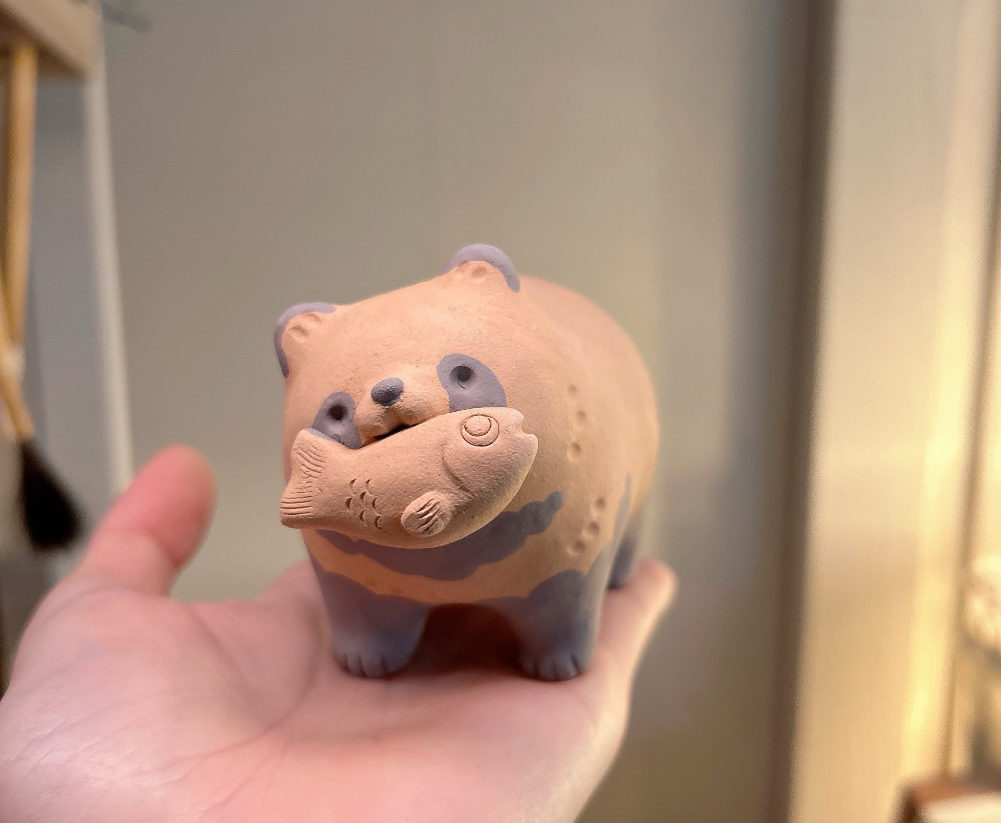 大宝的萌物推荐可爱的貉子陶土手作[手指比心]【推:aonrcraft】