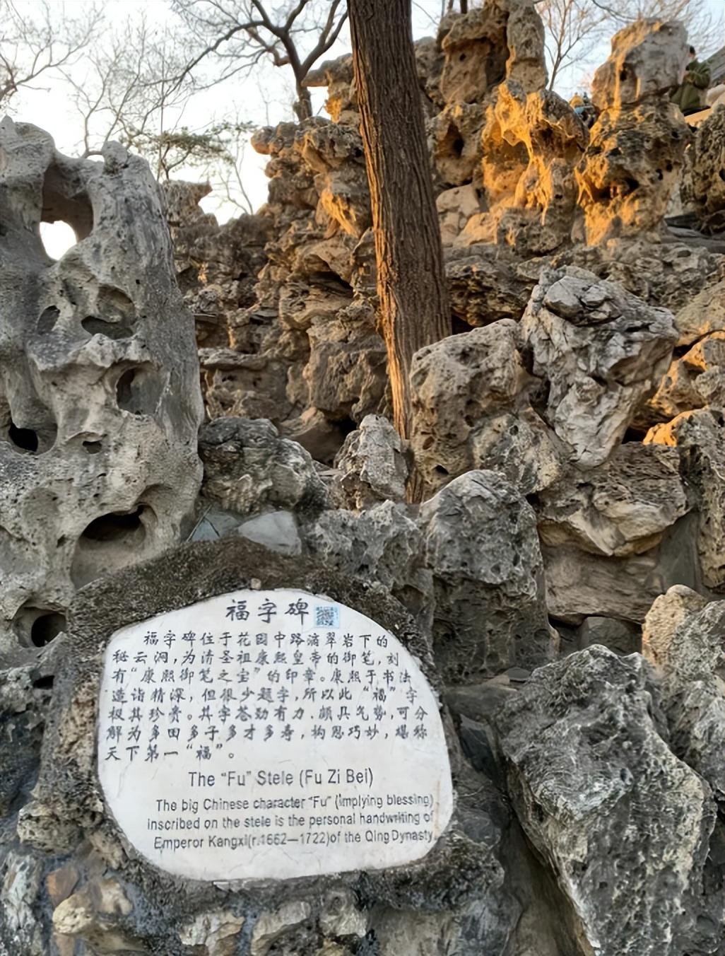 这有意思嘿 和珅的镇宅之宝 不仅保留至今 竟还在公开展示 这宝贝就是恭王府里的 那块神秘的福字碑! 康熙年间 孝庄太后60大寿时重病不起 康熙斋戒沐浴三天后 亲笔写下一个异体 “福” 祈福 这字暗含 “寿” 字 右半边模仿《兰亭集序》中的 “寿” 字所写 而田字没封口 寓意鸿福无边 孝庄太后病好后 将此福字刻成石碑 奉为国宝 乾隆五十五年 皇宫库房失火 福字碑所在的内值库也受牵连 当时主持调查和重建工作的和珅 极有可能借这个机会把福字碑偷运出了皇宫 和珅得到福字碑后 不敢明目张胆摆放 就打造了太湖石假山 把碑嵌在假山洞里 这个洞就是后来的秘云洞 嘉庆四年 乾隆死后第 10 天 嘉庆帝命睿亲王淳颖和定亲王绵恩查抄和珅家 抄出白银八亿两等巨额财富不说 还发现了这块福字碑 嘉庆想把碑搬回皇宫 却遭到众臣反对 因为恭王府正好位于 北京城土龙(故宫中轴线) 和水龙(北海到后海一线) 两条龙脉的交叉点 福字碑被和珅放在这里 正好镇住龙脉 嘉庆帝无奈之下 只能将石碑封存起来 直到 1962 年 周总理批示重修恭王府 福字碑才重新出世 后来还被定为 “中华三绝” 文物之一 成了恭王府的镇园之宝