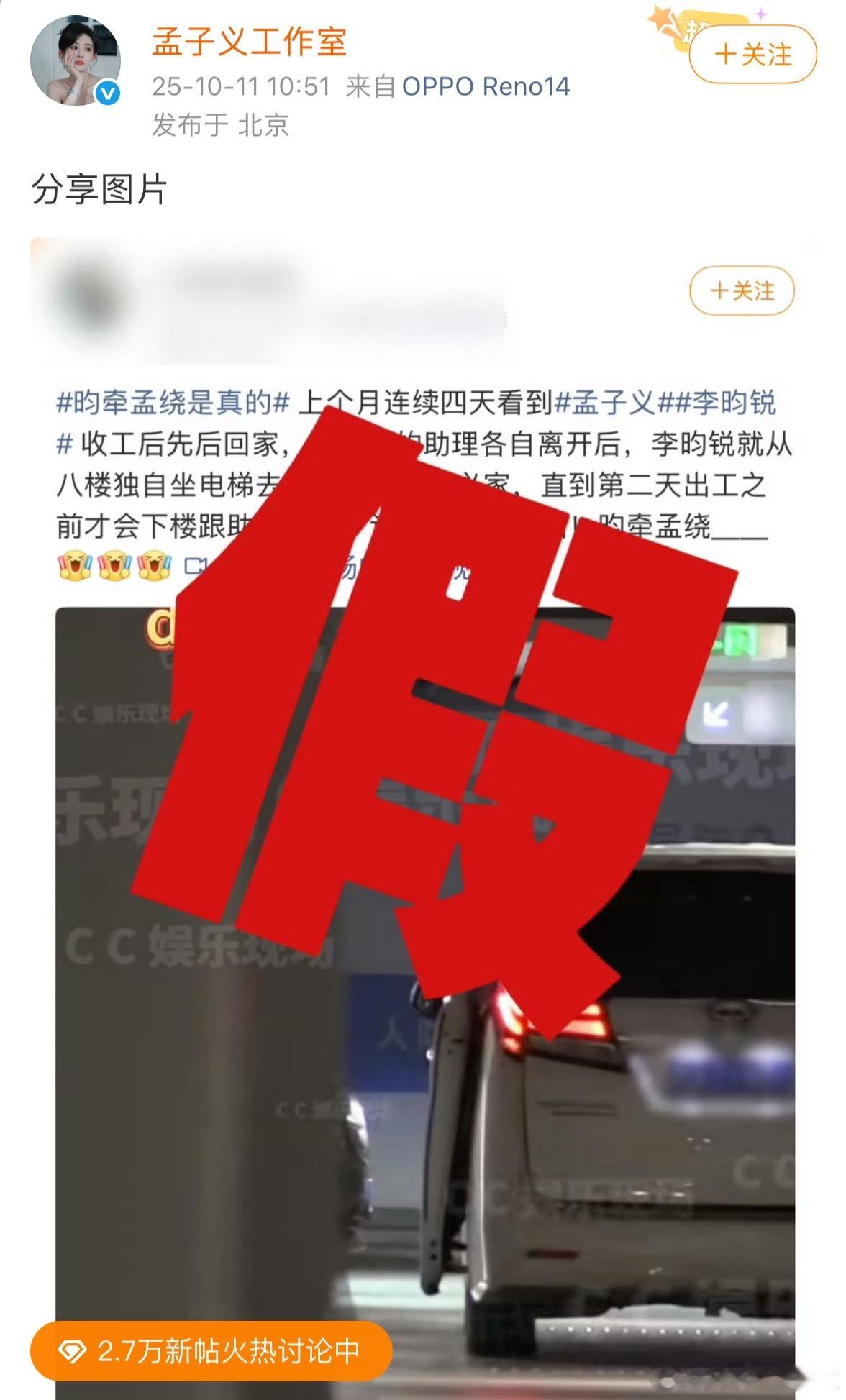 孟子义李昀锐辟谣这么快? 还是基本同时发的[泪奔] 工作室辟谣孟子义李昀锐恋情