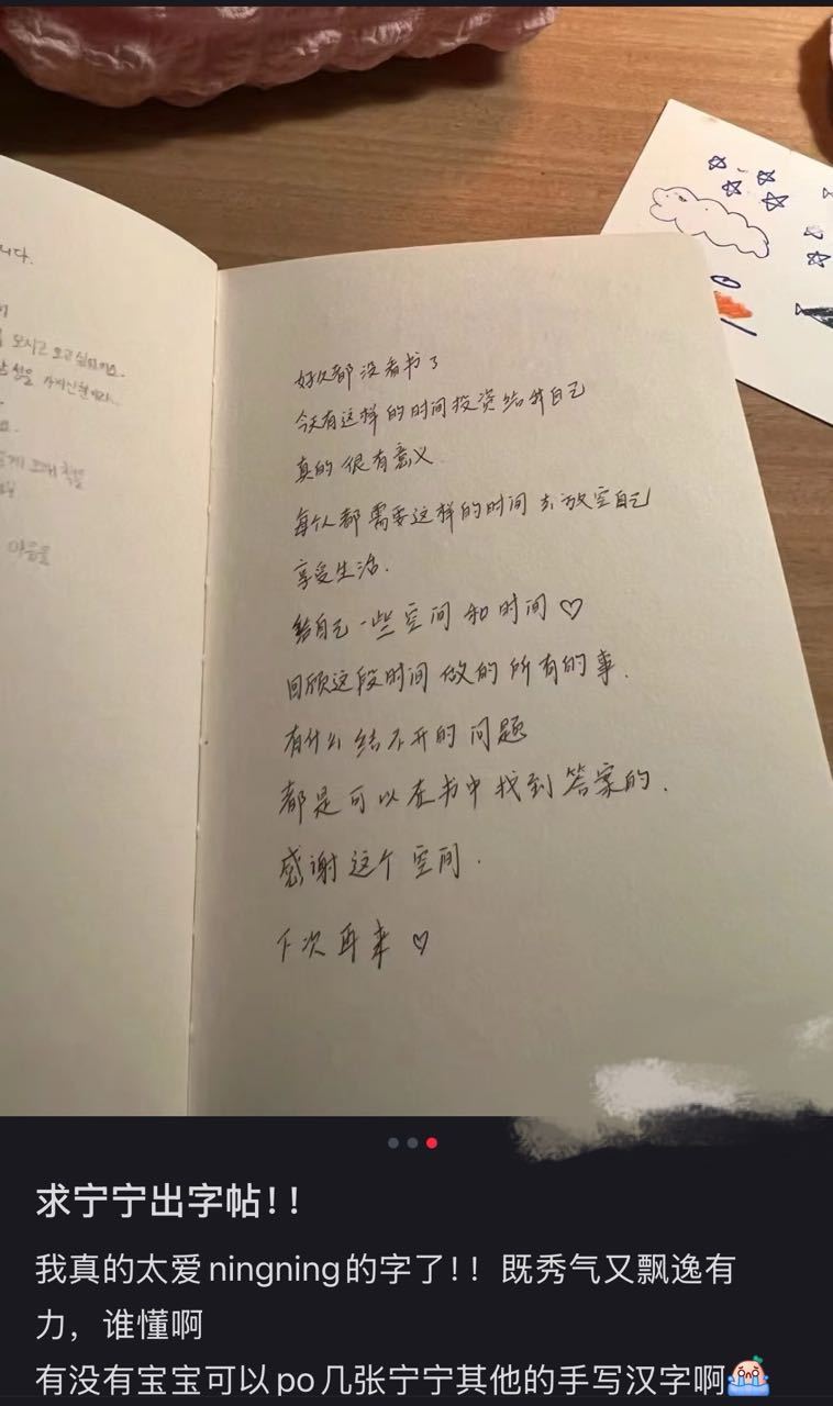 想学宁宁的字的可以先抄 angel 一百遍 倒数第四行