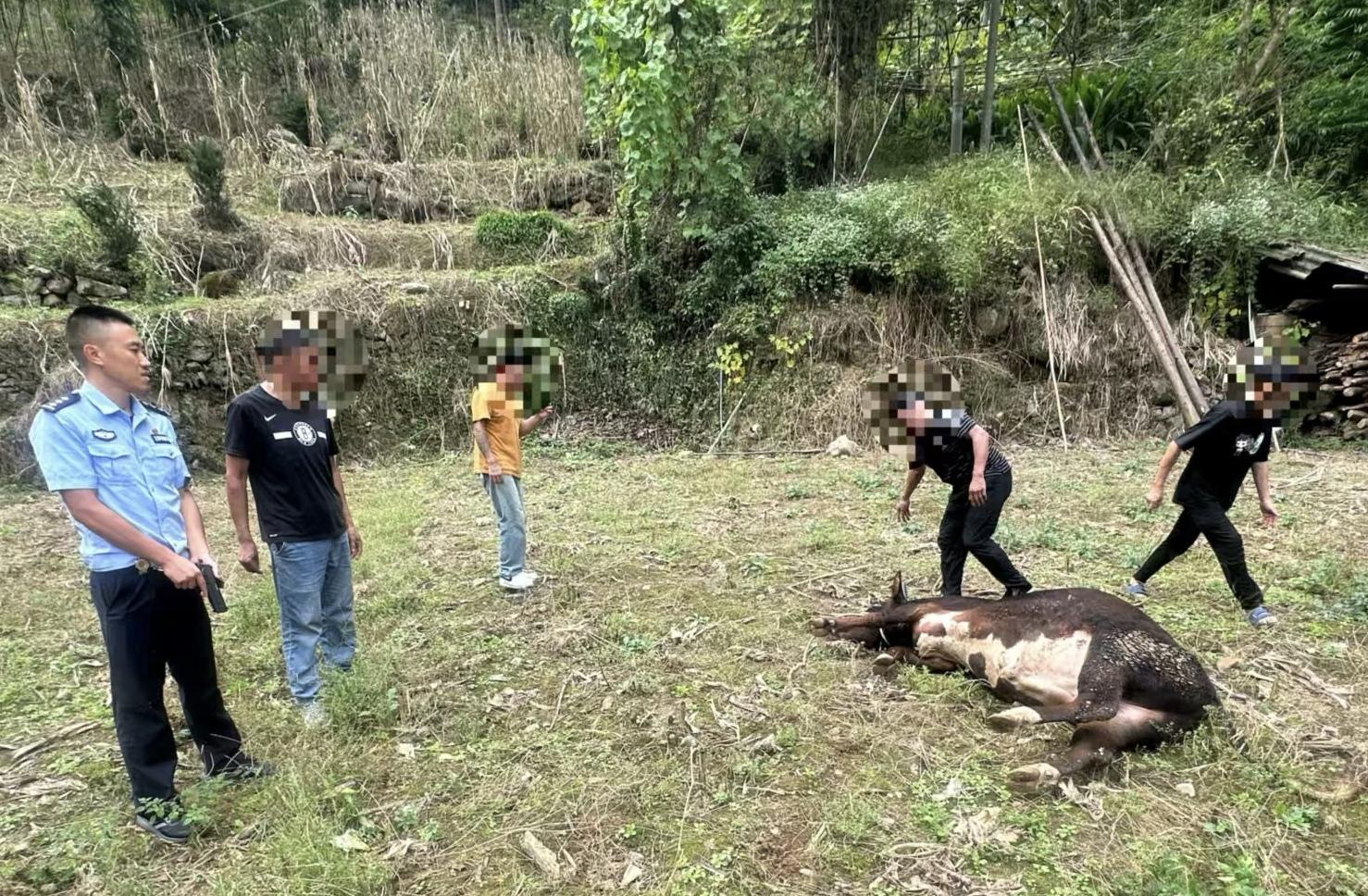 【#乐山一千斤疯牛失控乱窜被击毙# 】#千斤疯牛失控乱窜被警方3枪击毙# “砰!砰!砰!”三声清脆枪响后,一头重达千斤的失控疯牛应声倒地,险情瞬间化解——这是10月10日在四川省乐山市马边县上演的惊险一幕。当天14时30分许,马边县大竹堡乡白岩湾村一头黑牛突然受惊发疯,并在路面狂奔乱窜。彼时,现场正有群众办理丧事,疯牛给过往行人及现场人员带来极大安全隐患。获悉这一紧急警情后,雪口山派出所所长马海石前立即带领民辅警迅速赶赴现场。