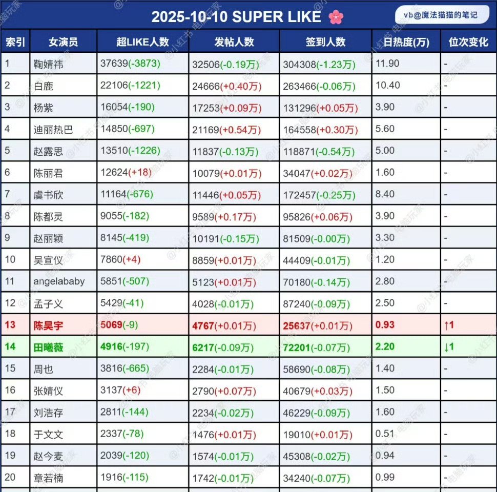 昨天女明星超like最新一览