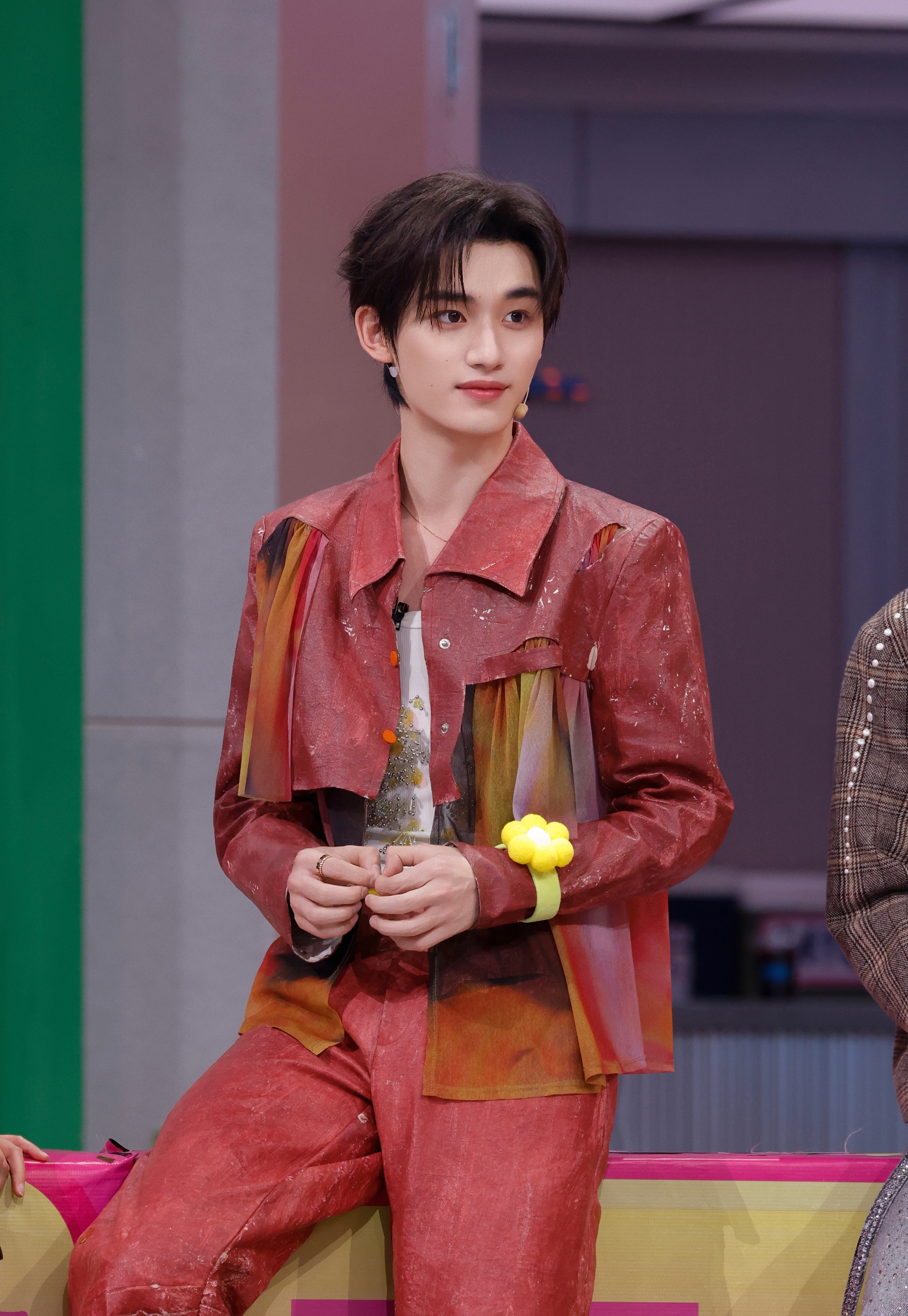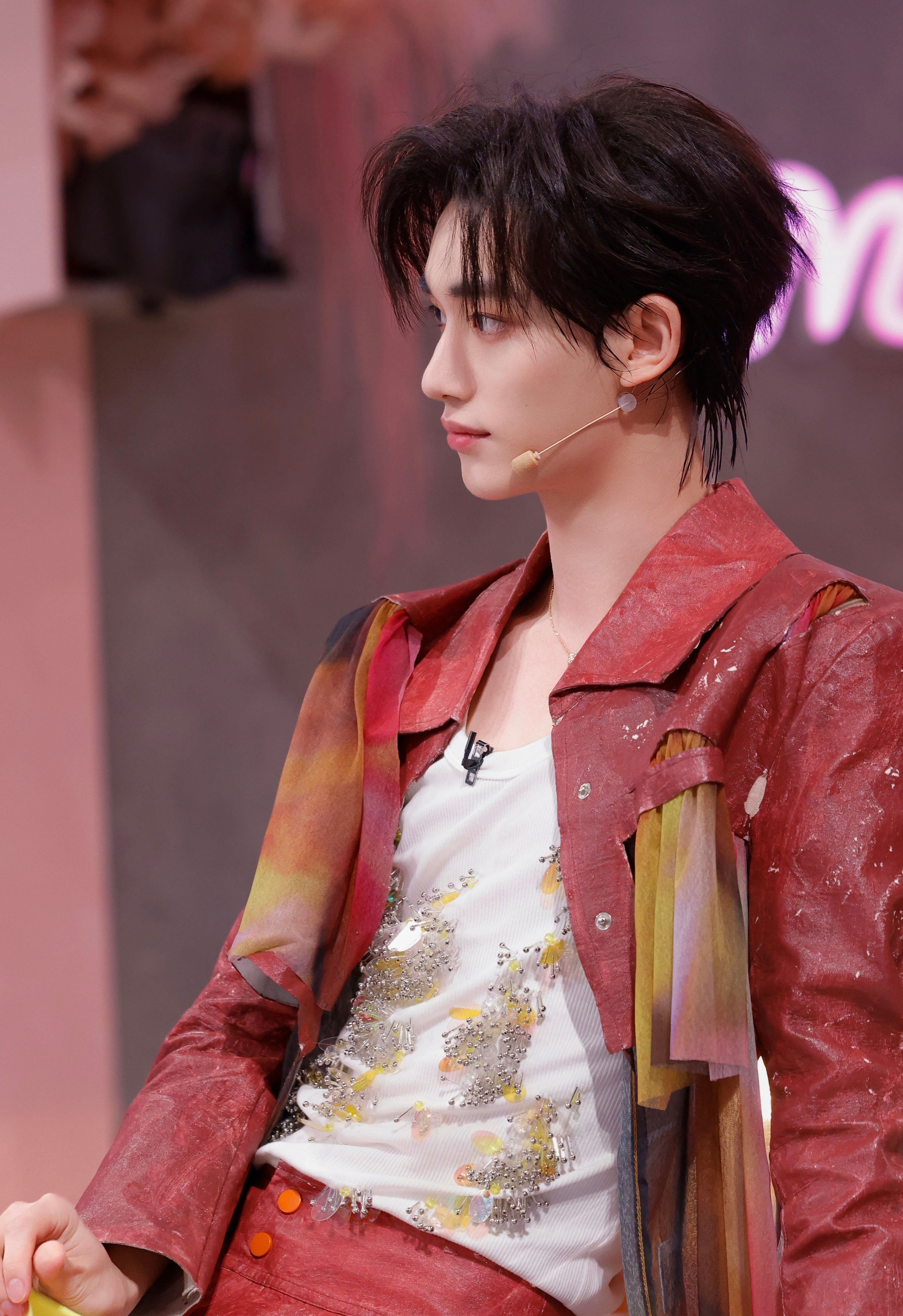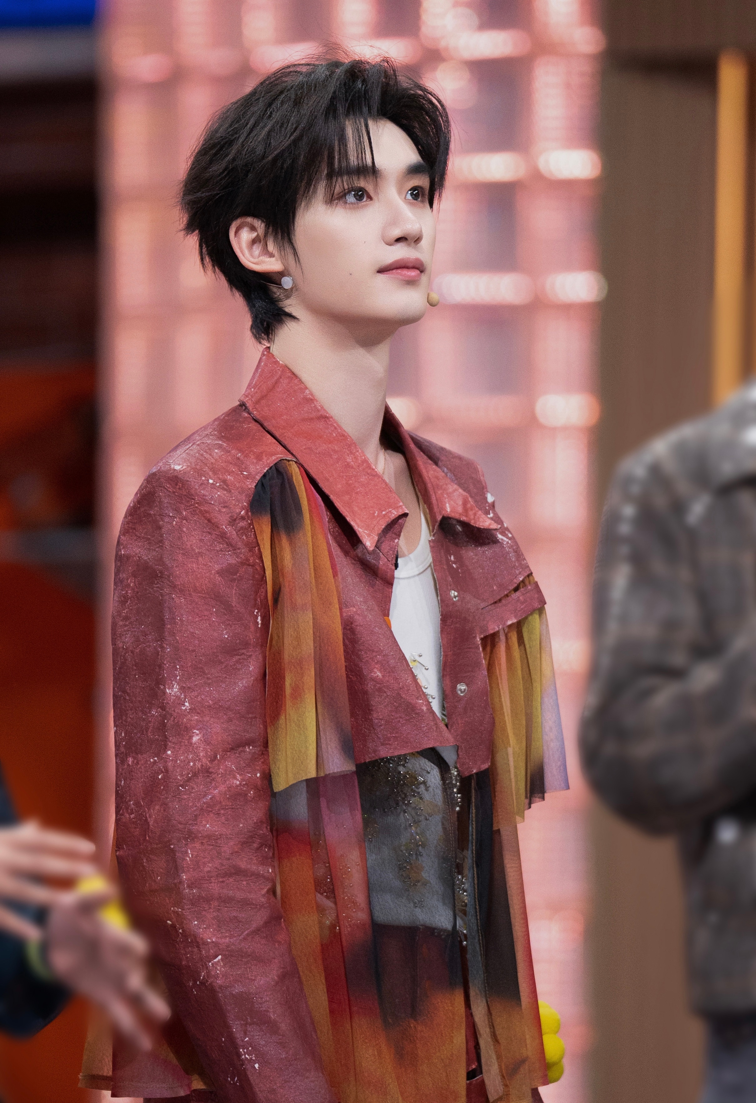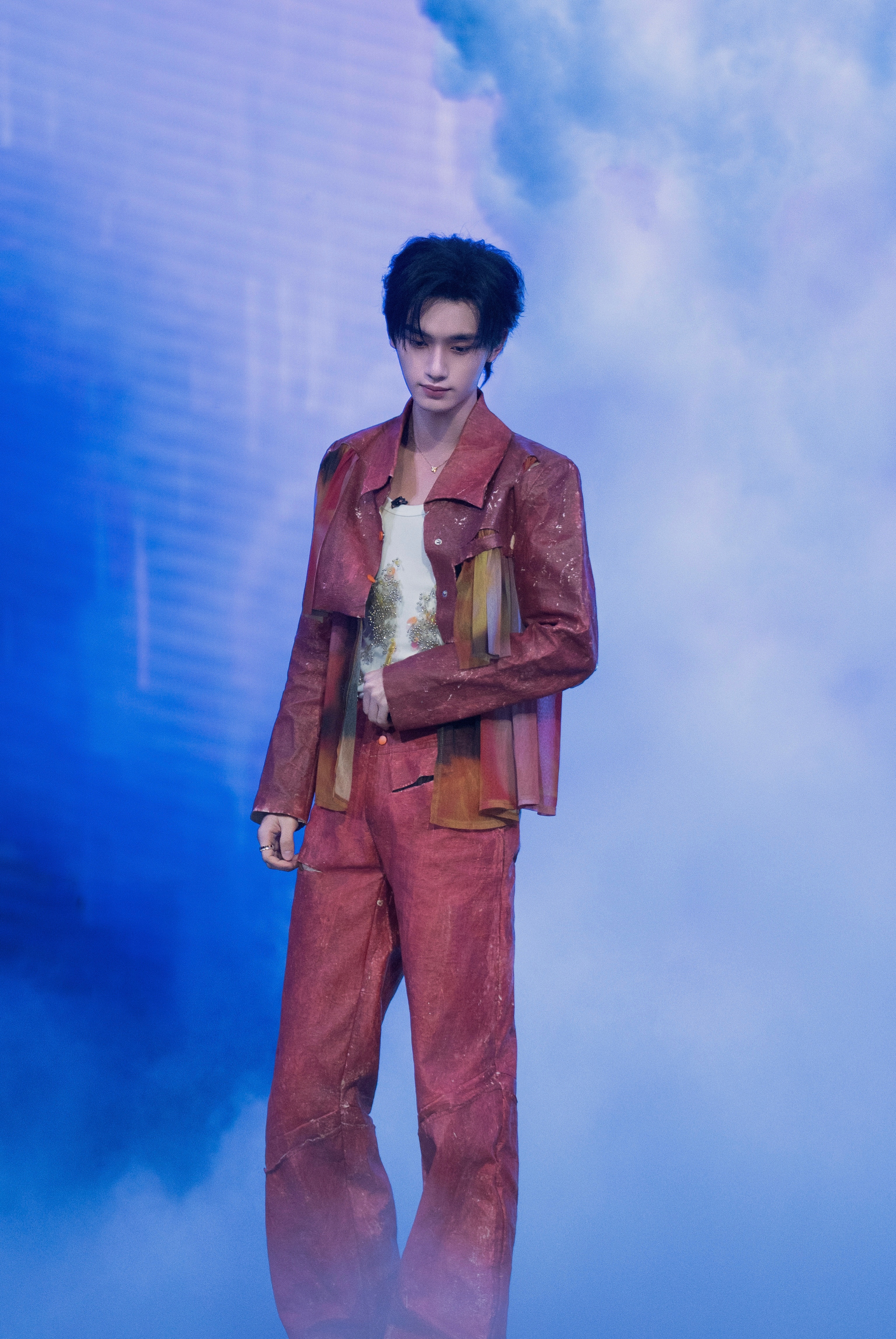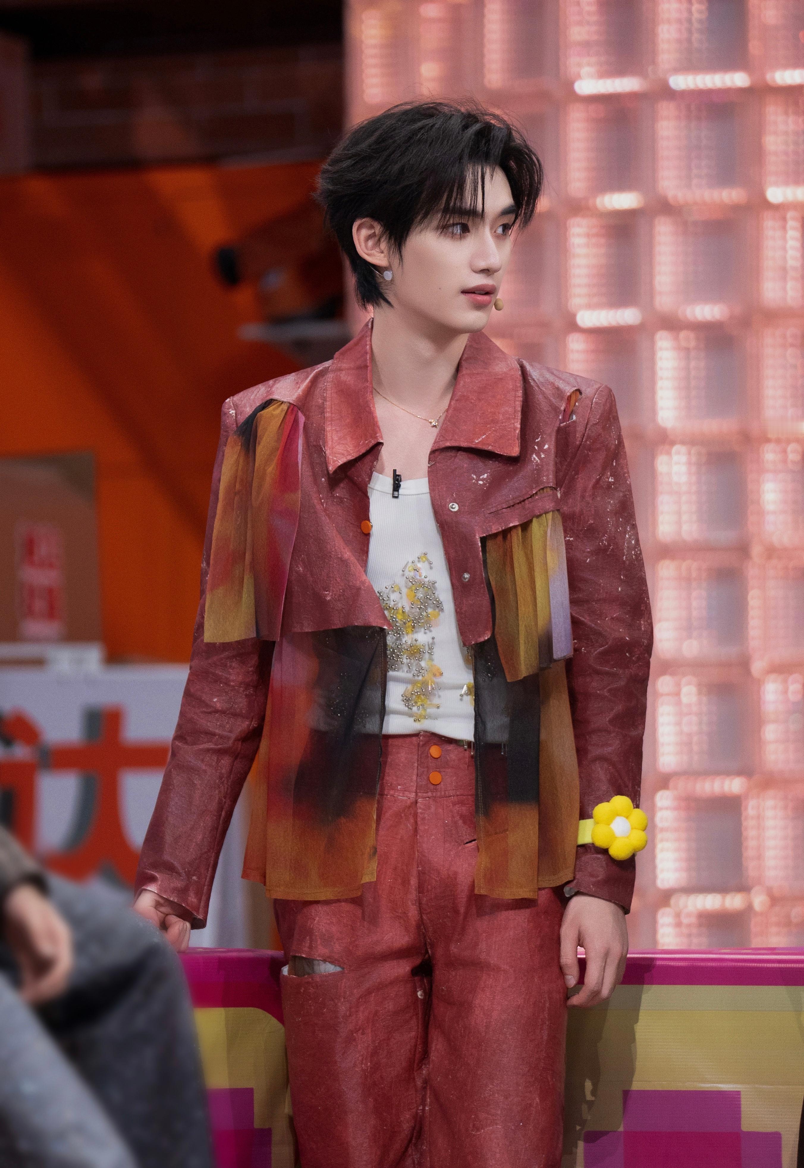 丁程鑫今日亮相《你好星期六》节目Look,身着JRUREMINDS皮革彩纱拼接