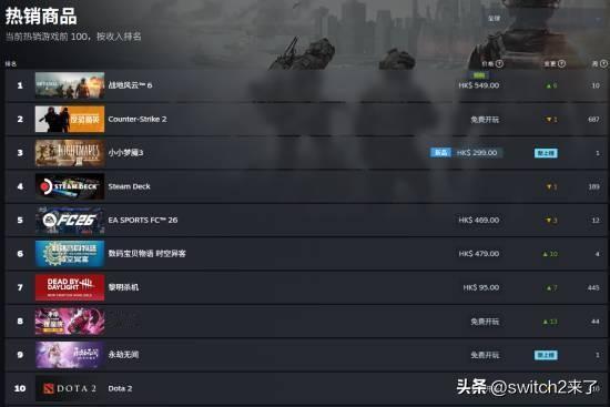《战地6》于今日正式发售,目前已登顶Steam全球畅销榜。据分析师预估,该作在发售前仅通过Steam平台即已创造超1亿美元的预售收入。 Steam商店显示,《战地6》登顶全球热销榜,超越《反恐精英2》与《小小梦魇3》。在愿望单排行榜中也位列第四,仅次于《深海迷航2》《Deadlock》与《Light No Fire》。 游戏行业分析师里斯·埃利奥特指出,《战地6》在Steam平台已积累超350万愿望单关注及180万份预售订单,预售阶段收入约达1亿美元。