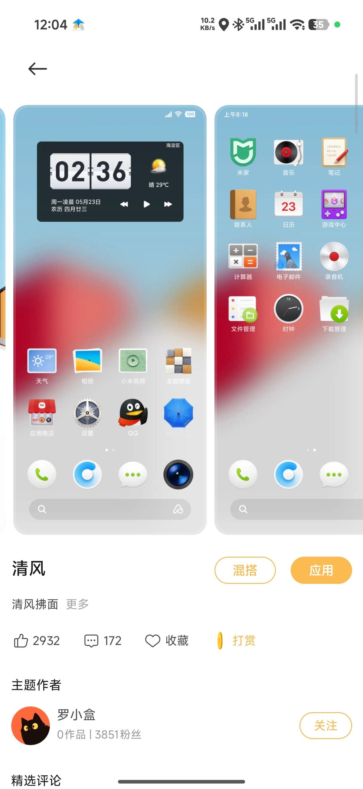 原理:通过主题商店下载一个已经下架的小米主题「清风」,按照以下步骤操作。