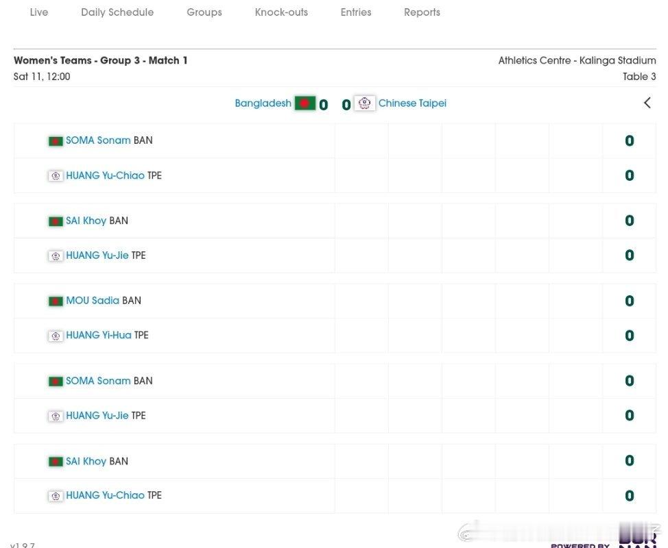 2025年国际乒联印度团体亚锦赛女团小组赛对阵表: