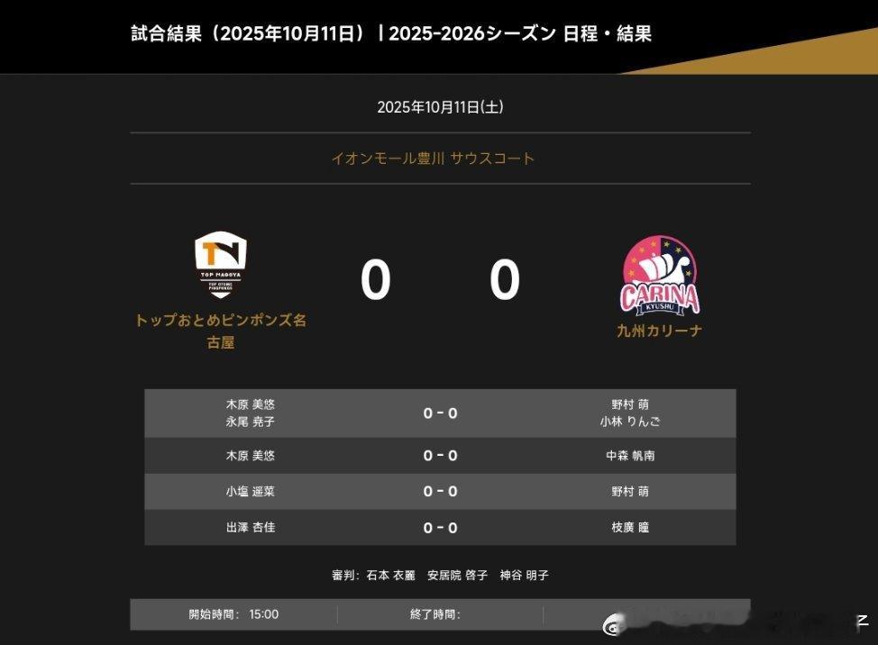 2025-2026赛季日本乒乓球T联赛对阵表: