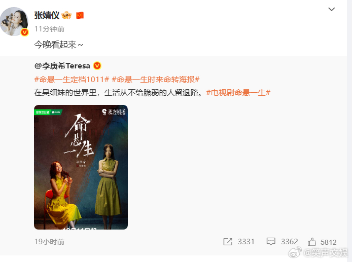 张婧仪转发李庚希新剧张婧仪转发宣传李庚希命悬一生张婧仪火速响应!转发助力李庚希