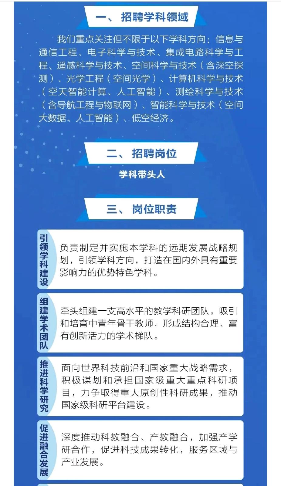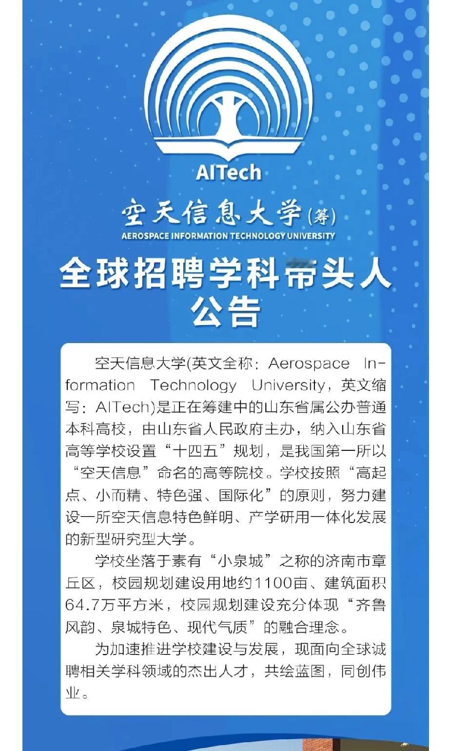 空天信息大学全球范围招聘学科带头人了,专业炸裂。 空天信息大学重点关注的学科方向有:信息与通讯工程、电子科学与技术、集成电路科学与工程、空间科学、光学工程、空天智能计算、导航工程与物联网等等,这些专业都太厉害了。 信息与通讯工程,华为和中兴的老本行,进华为很容易;集成电路就不用说了,当下最热门的专业,薪水高的吓人;光学工程也不错,现在国家正在大力攻克光刻机,学这个正当其时;未来人类会进入自动驾驶时代,自动驾驶对导航提出了更高的要求,对人才很渴求;空间科学,一不小心就能成为人类走向宇宙的先驱。 这些专业可比什么生化环材强多了,全都是当前最热门、发展空间很大的专业。 空天信息大学明年招生,估计分数不会太低了。