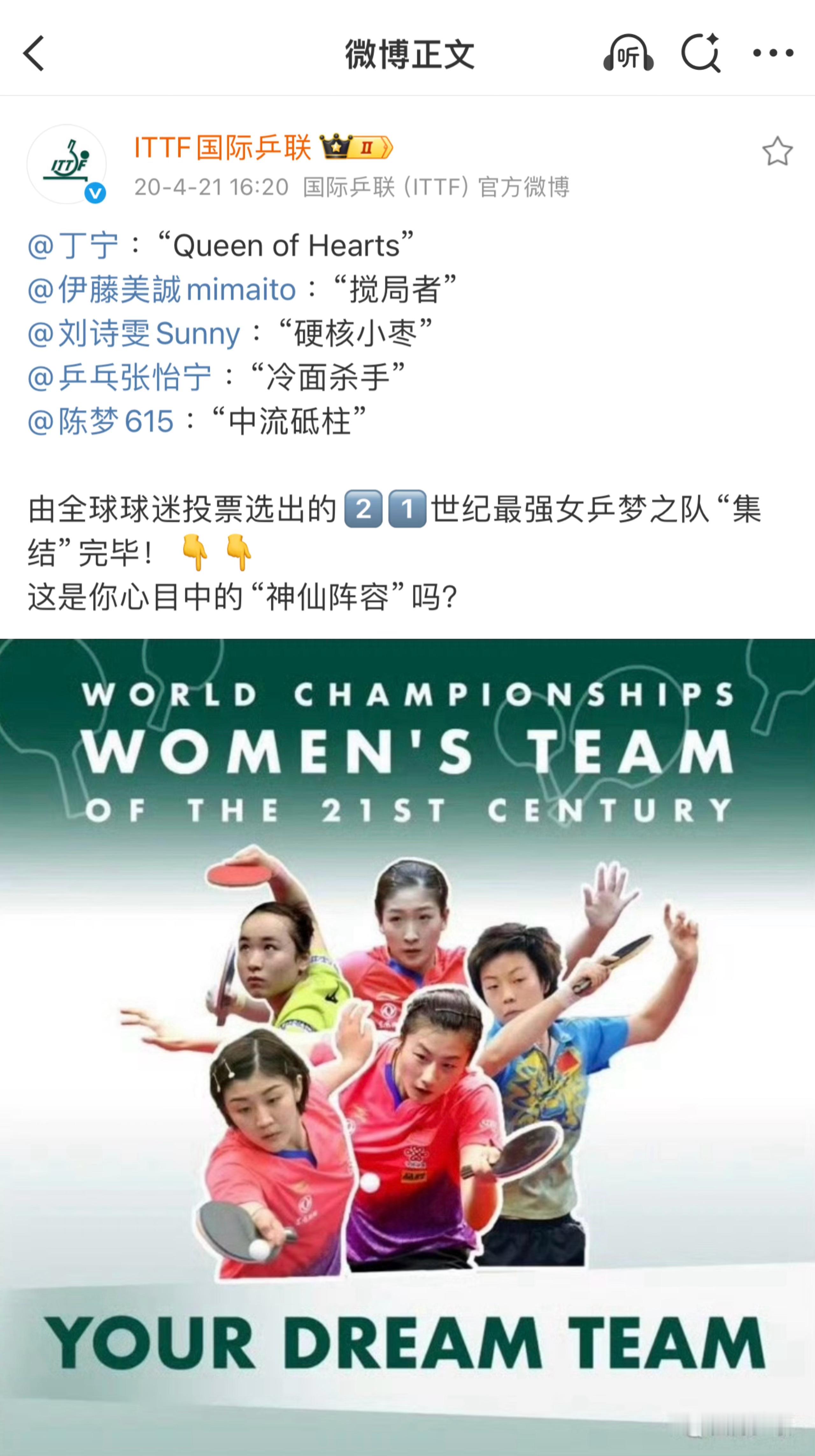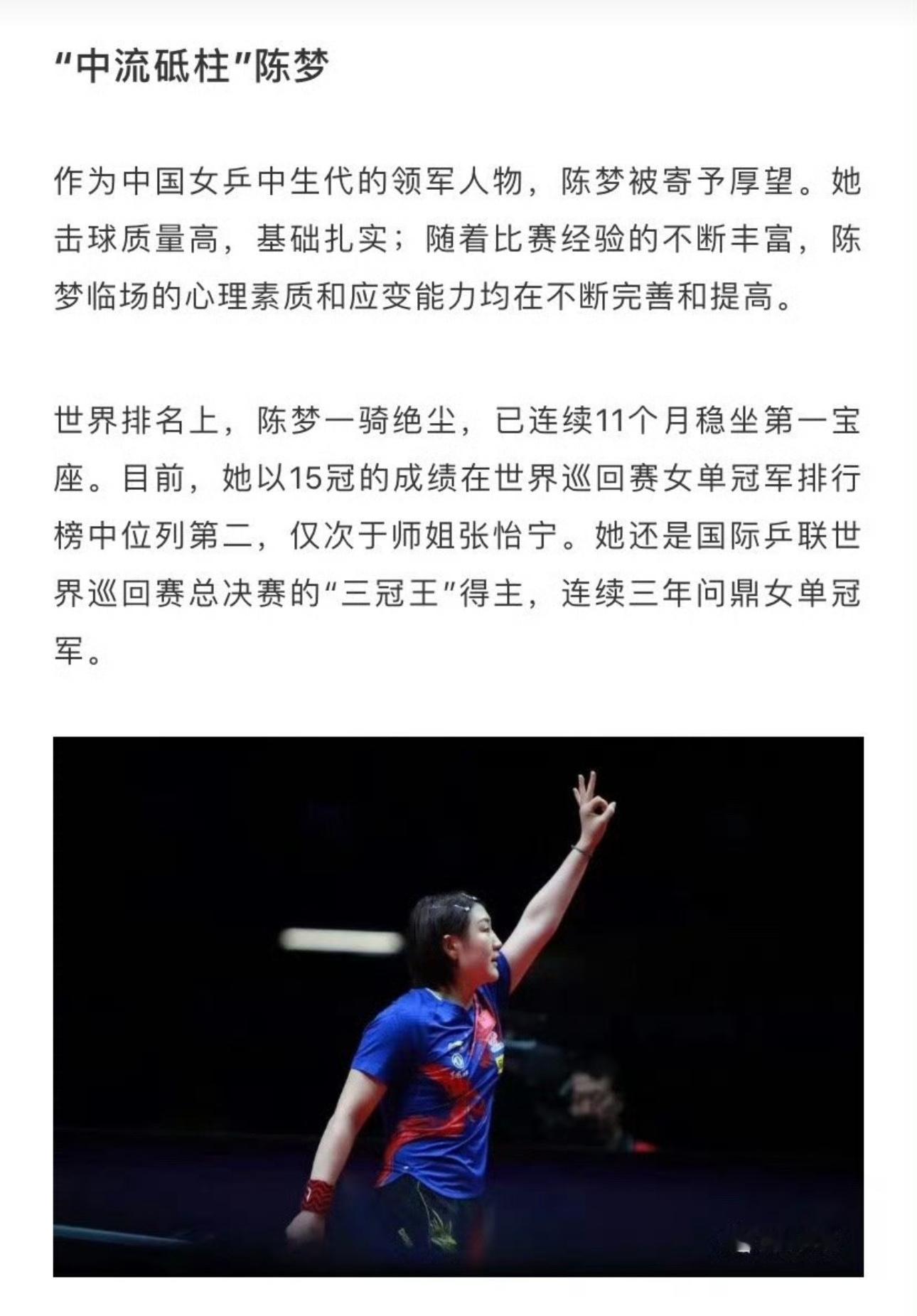 2020年4月21日ITTF国际乒联报道:陈梦是“中流砥柱”