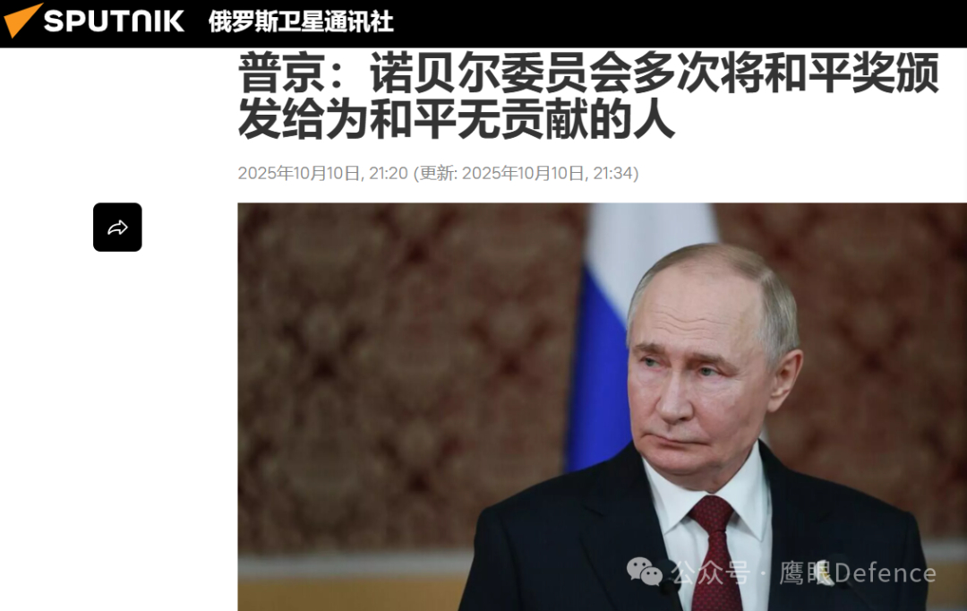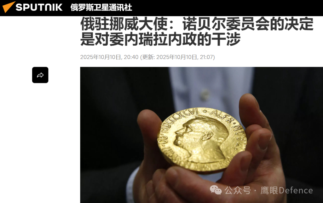 普京到底是真为特朗普叫屈,还是对特朗普发起感情攻势,试图借此再度争取特朗普,帮助克里姆林宫在俄乌战争中获得优势,解除制裁,这个我就不评论了,不过,可以确定,今年的诺贝尔和平奖获得者是一位委内瑞拉反对派女士,俄罗斯政府是相当不满的:克里姆林宫支持马杜罗。