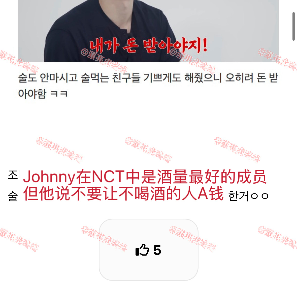 【instiz】NCT Johnny:“聚会上不喝酒的人为啥要A钱呢,TA们不喝酒还陪我们玩,应该给TA们钱才对吧”
