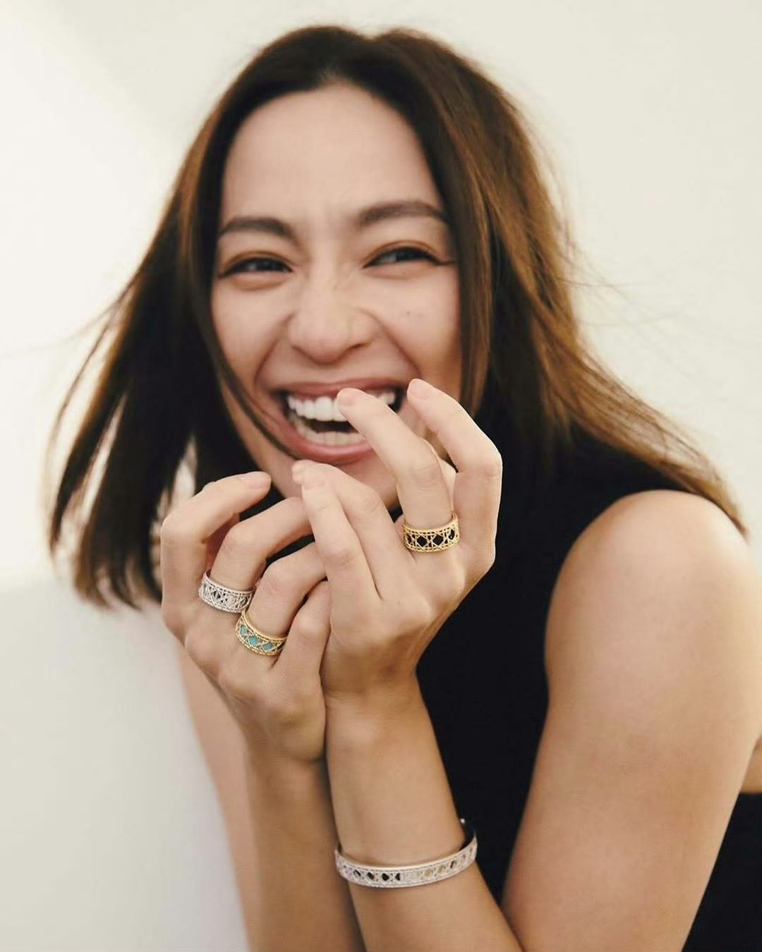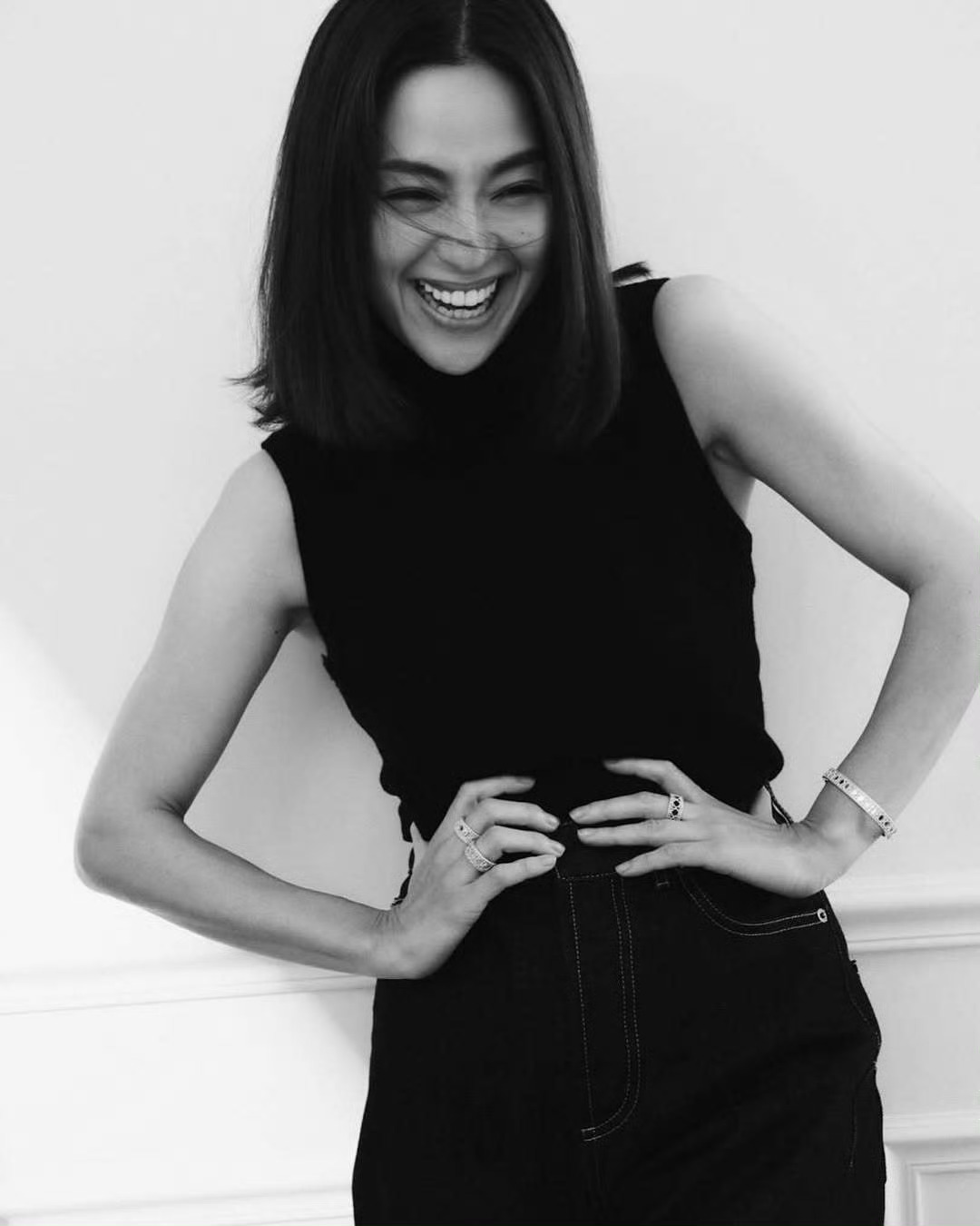 刘亦菲把死亡玫粉穿出了定制款的感觉,这种颜色普通人穿上分分钟黑三度,她居然能穿出