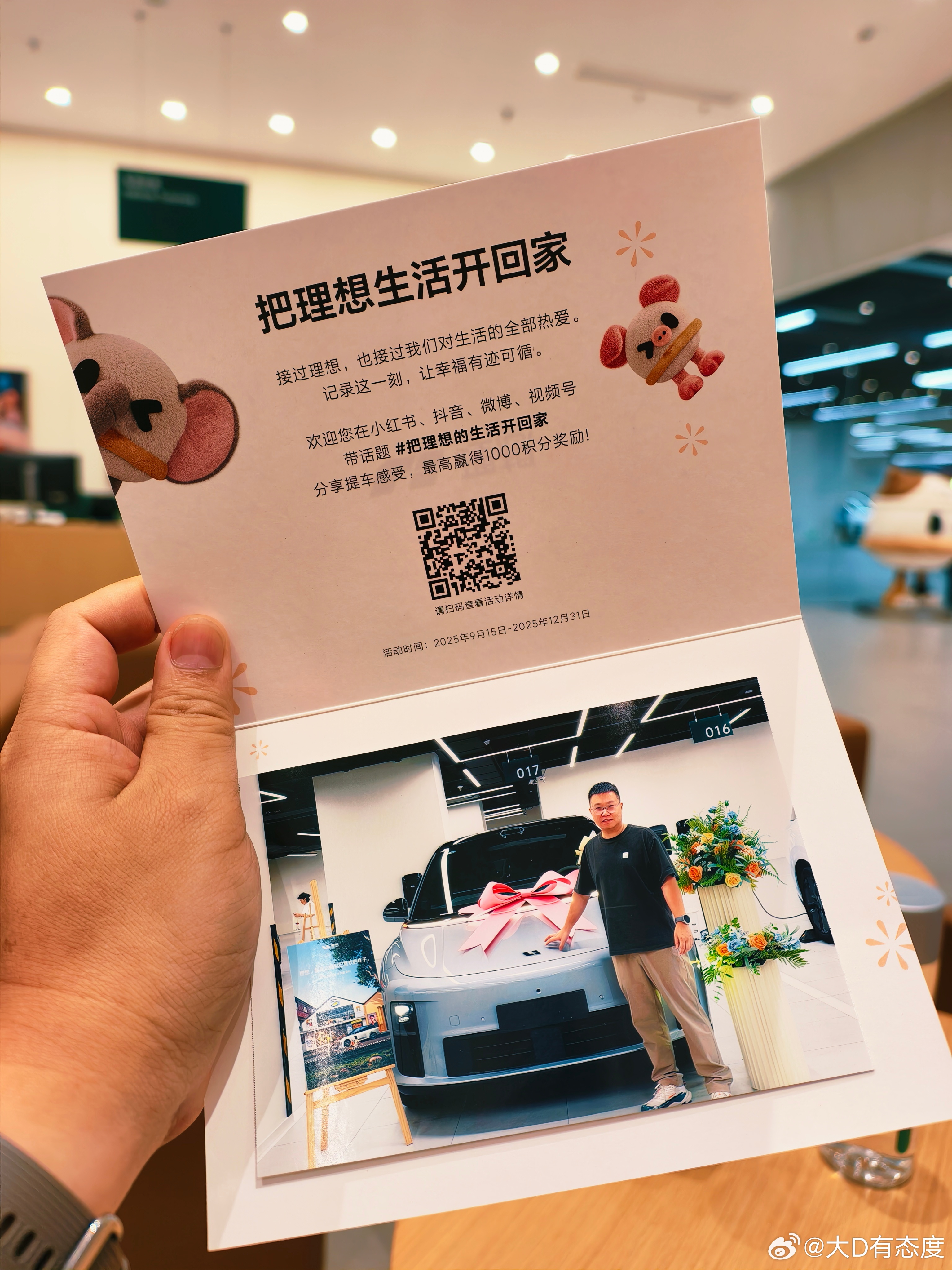哈哈,上海理想交付也给了情绪价值,有手捧鲜花,也有现场提车打印照片贺卡了。
