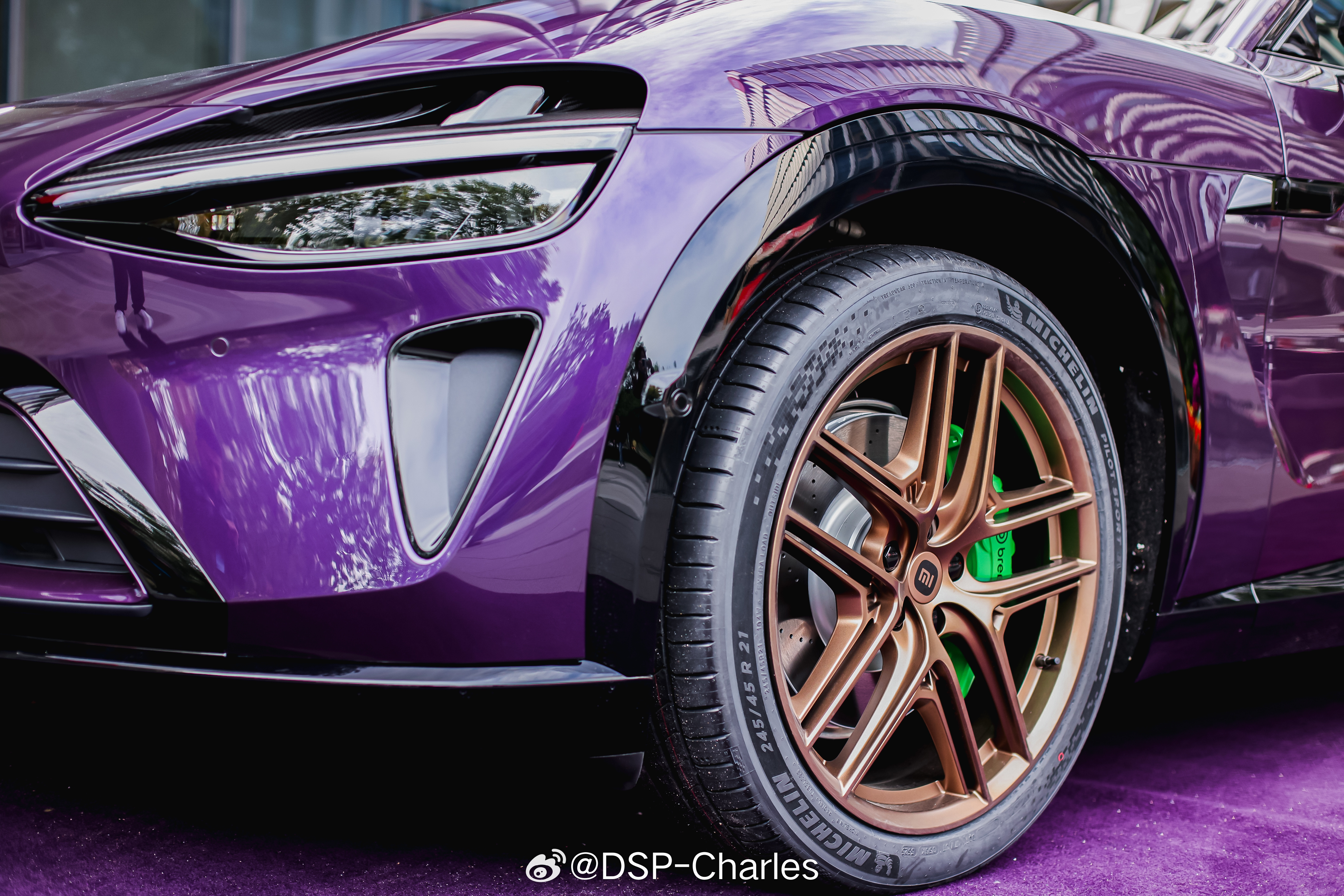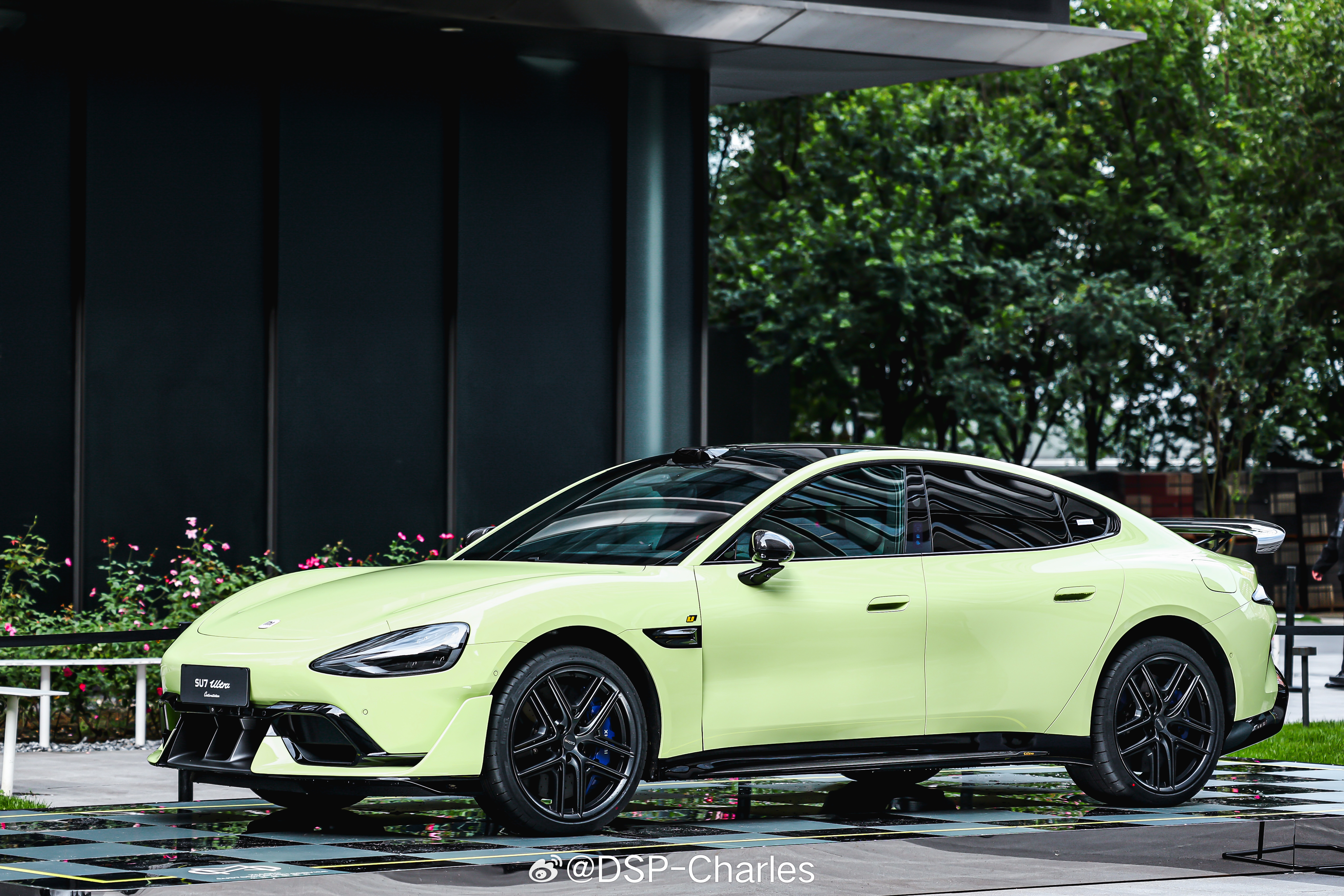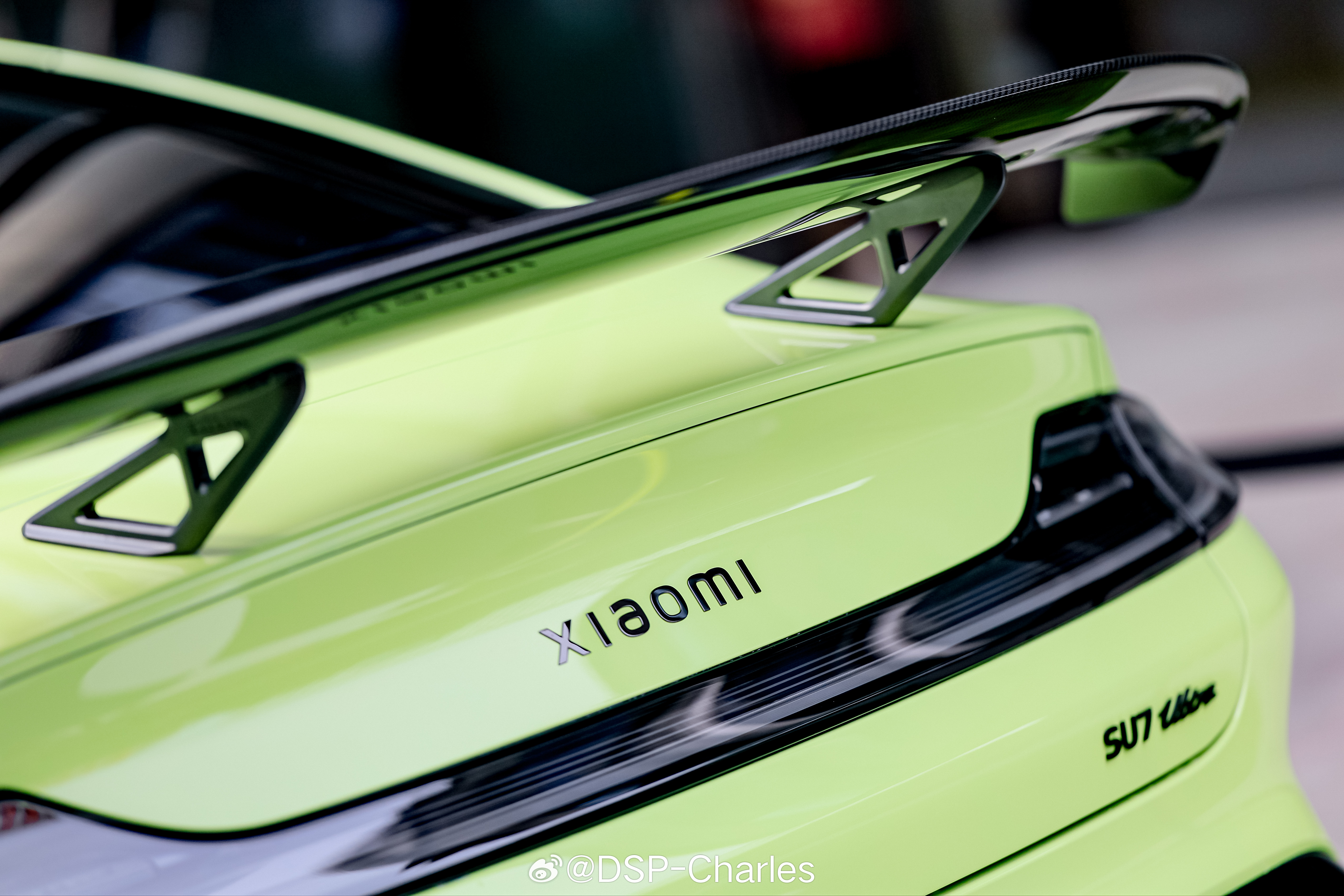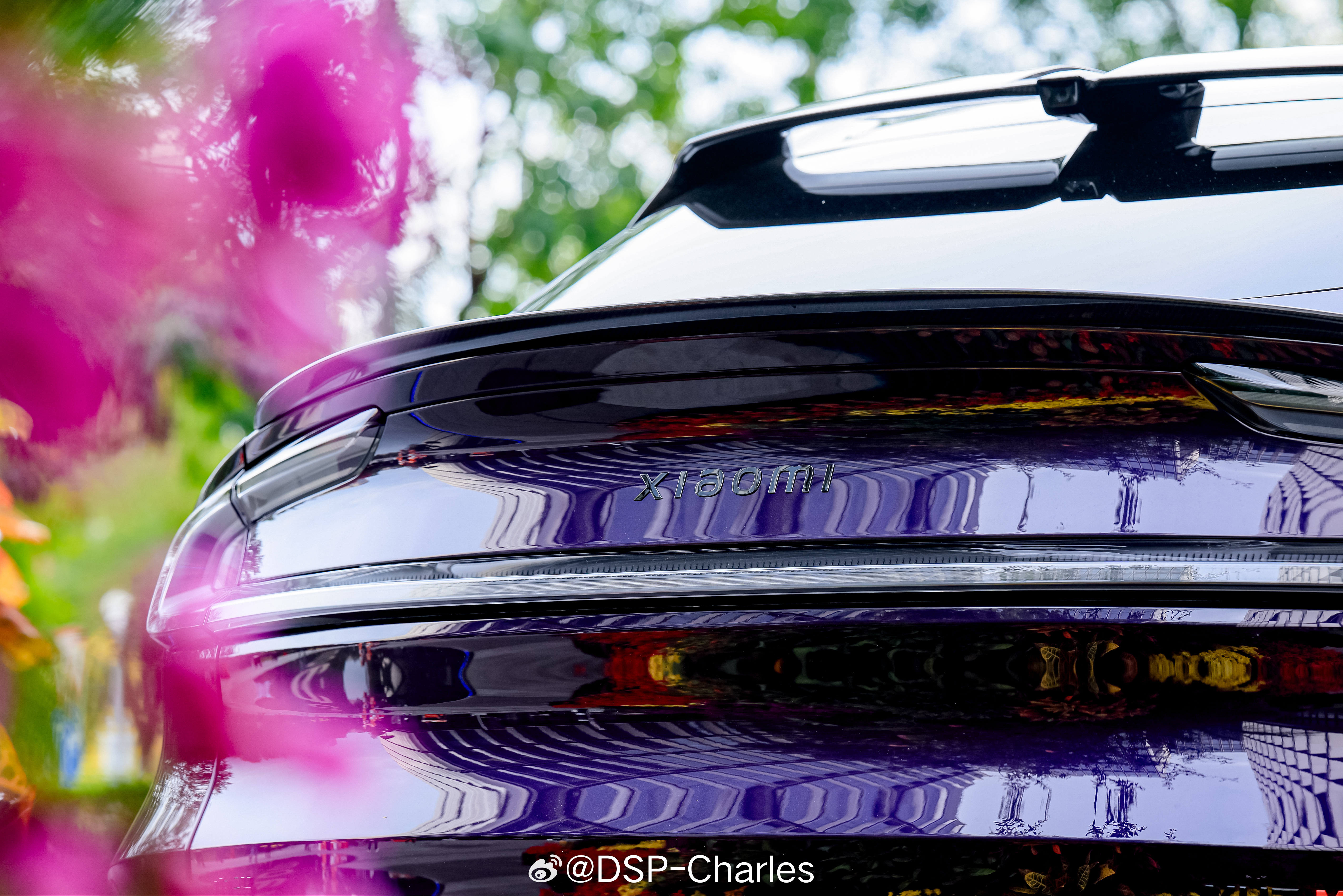 又找到一些「小米员工车展」上的高定色实拍,此前都还没有户外展示过这两辆车,光泽感确实不一样。