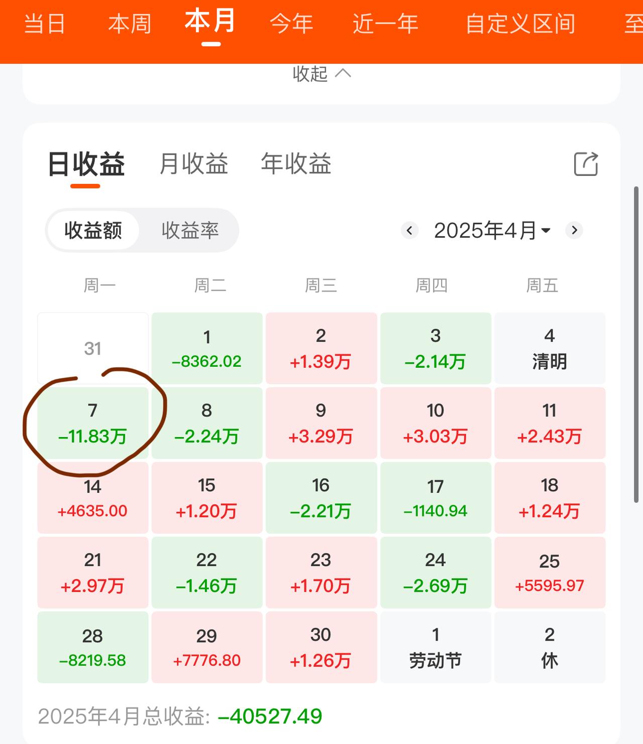 昨天加上美股亏了将近20万。 这个周末股民都不好过,想起了四月七号。差不多同样的