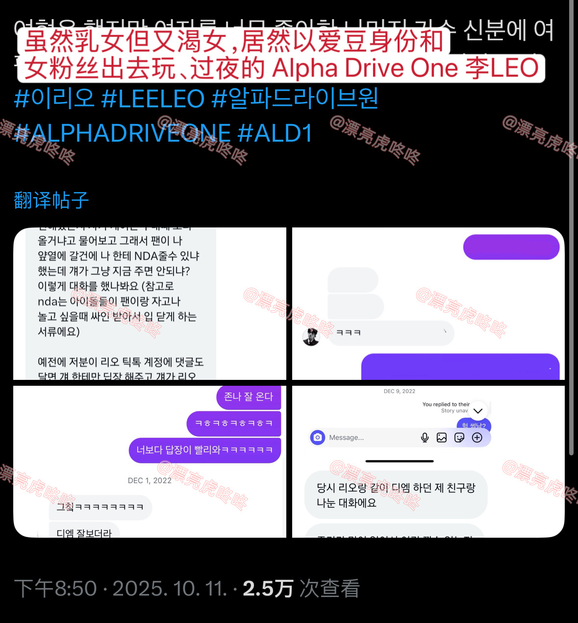 【twi】ald1 李LEO被爆以爱豆身份和女粉私联、私会、过夜、签NDA协议(爱豆想和粉丝私会时的保密协议) 曝Leo和女粉丝私联 曝Leo和女粉丝签保密协议 ​​​