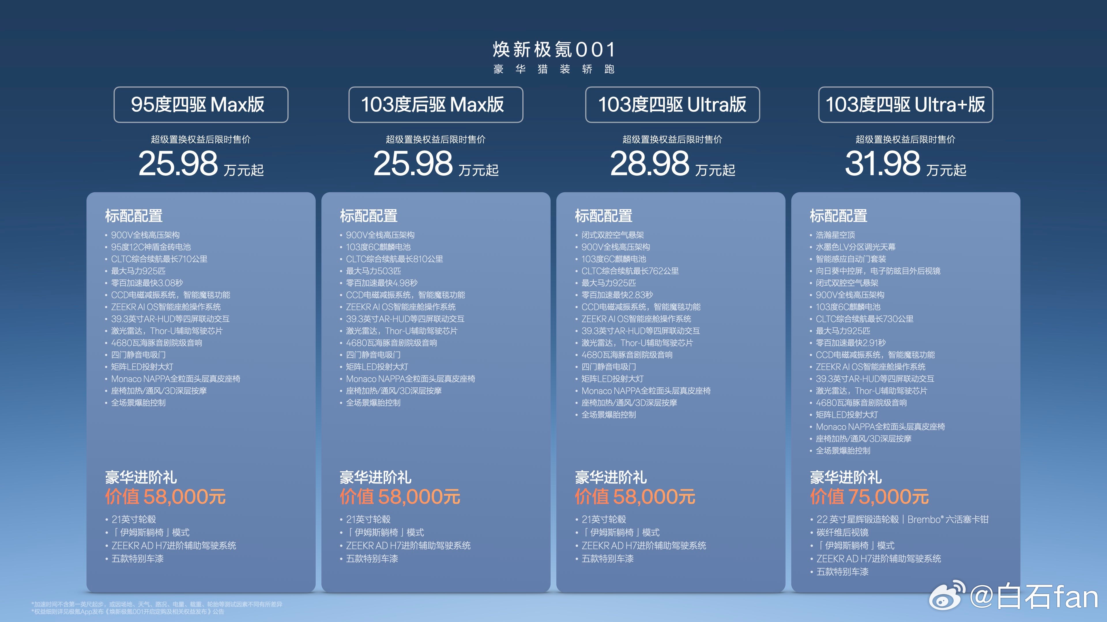 焕新极氪001正式上市,25.98万元起!如何?贵不贵?焕新极氪001猎装豪华新