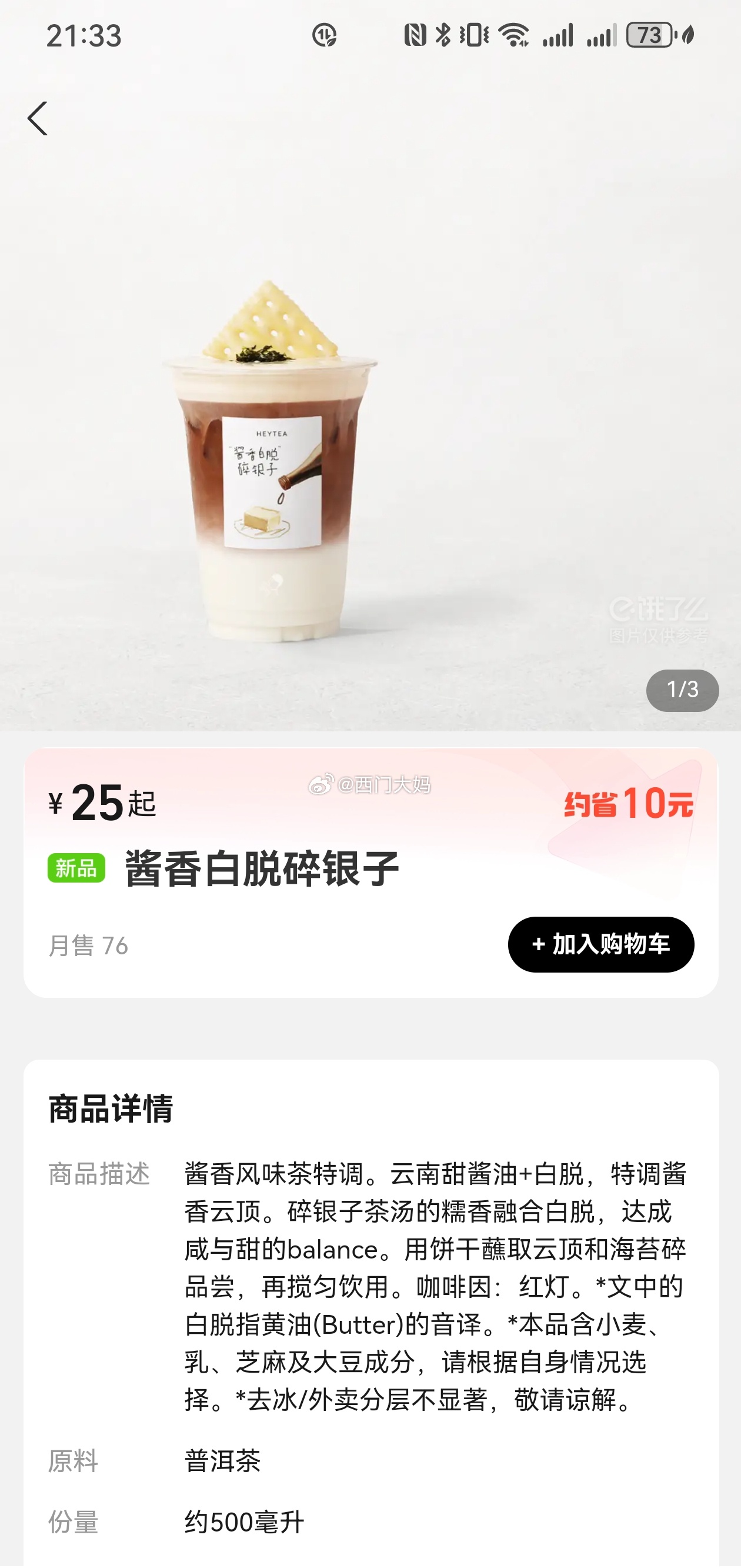 我刚才不小心点开了外卖页面,然后一眼扫过去这个奶茶的名字,看成了: