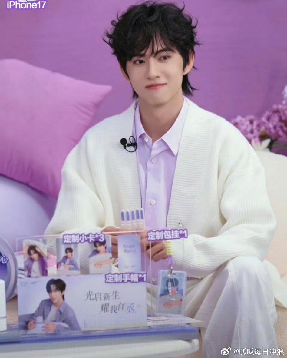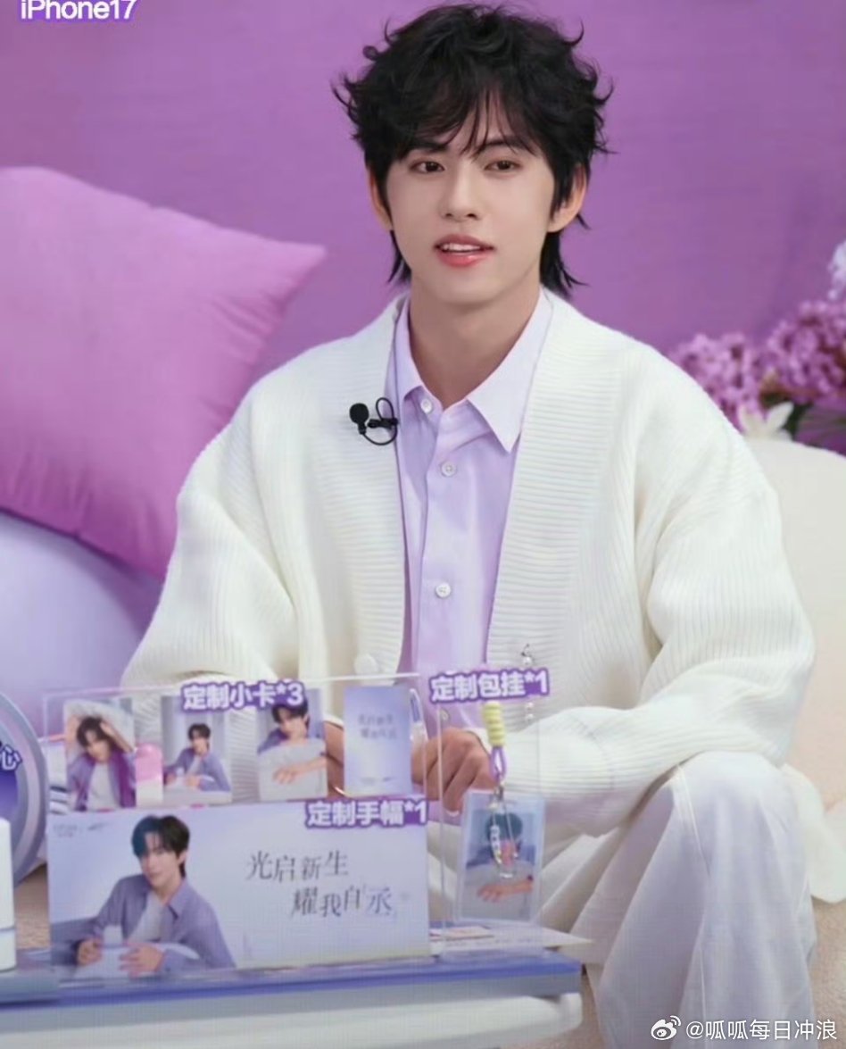 刘轩丞今晚直播图,状态好好!香芋紫~ [手指比心]