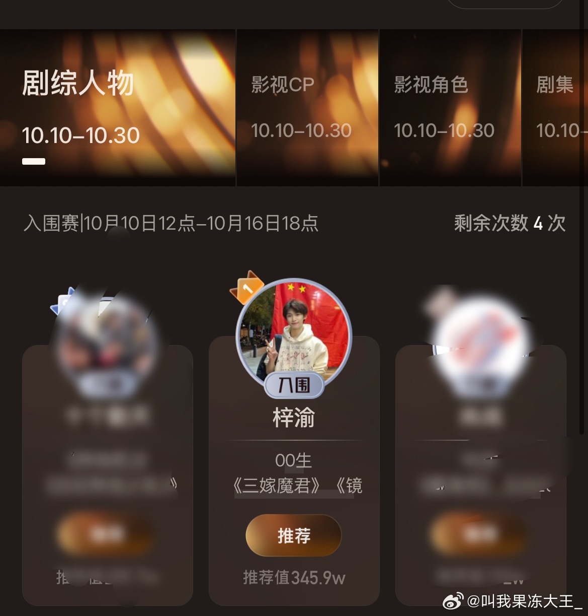 梓渝这不直接倍 杀 了吗,梓渝火了之后破了太多的记录,投票推荐值更是稳居第一。yuni只做一