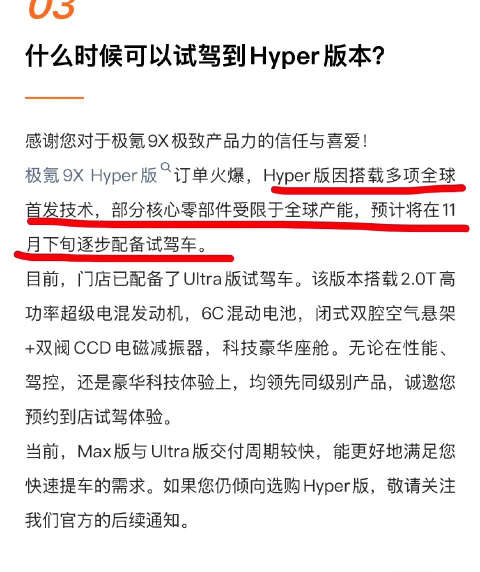 孔辉刚透露了一些极氪9X首发的48V稳定杆的事情,有几点干货: 1,极氪9X的48V稳定杆是孔辉供货,这也是孔辉48V稳定杆的首个客户,第一次应用,双双首发。 2,Hyper版本交付时间较长所说的【多项全球首发】技术,这个稳定杆就是其中之一。 交付时间较长,到11月下也是受限于稳定杆的供货时间和产能。 个人建议,Max和ultra版本其实就很好了,着急用车不是非得选Hyper版本。【来自懂车帝车友圈】