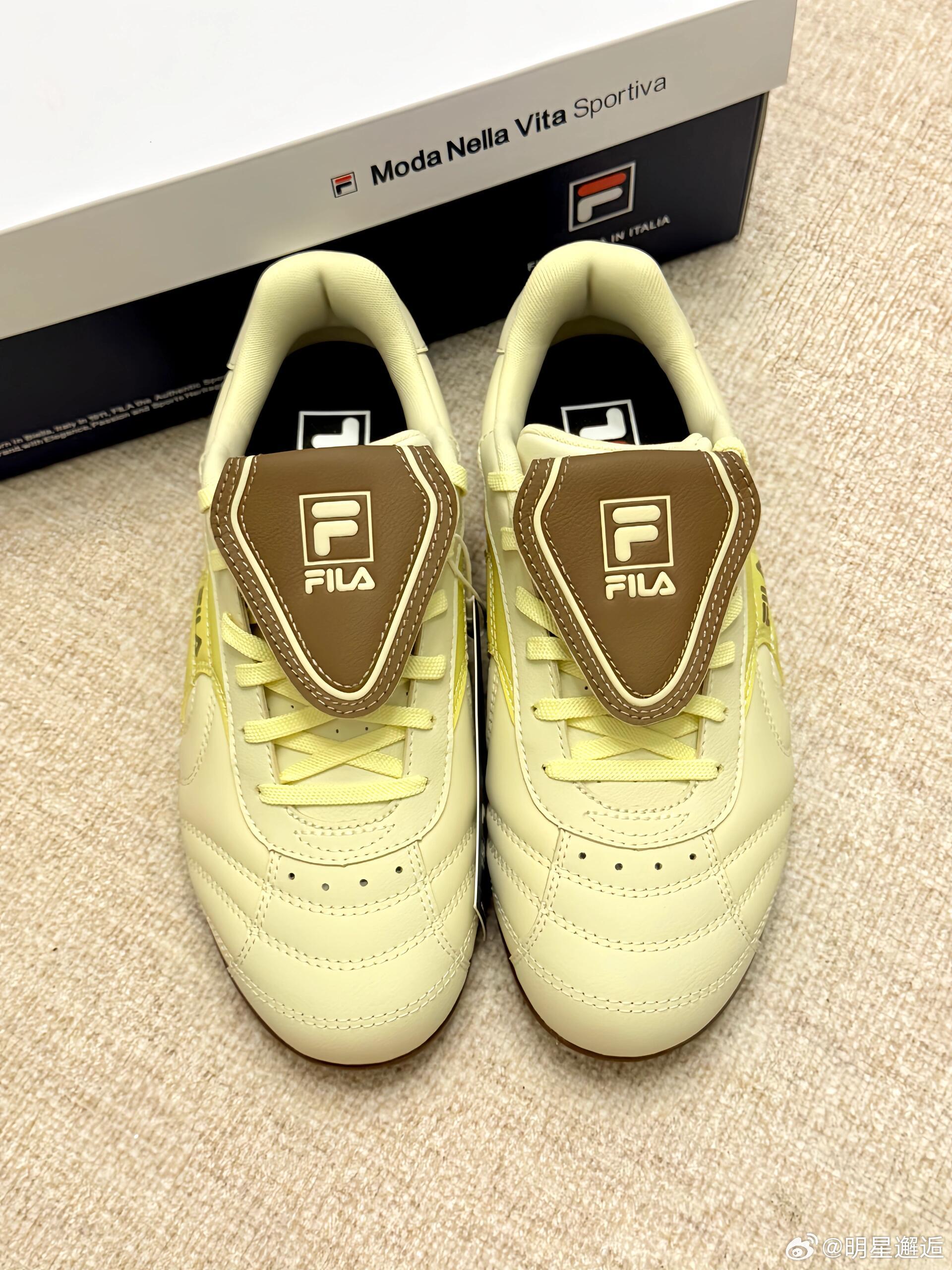 在柔和光线下,米白、明黄与棕褐的配色方案显得温暖而高级,织物纹理更增添了细腻质感。整体设计摒弃繁复,于简约中透露出不经意的时尚感,既适合日常休闲穿搭,亦能轻松融入多种生活场景,彰显FILA品牌经典与现代感兼具的独特魅力。时尚鞋履SOTD鞋控的日常