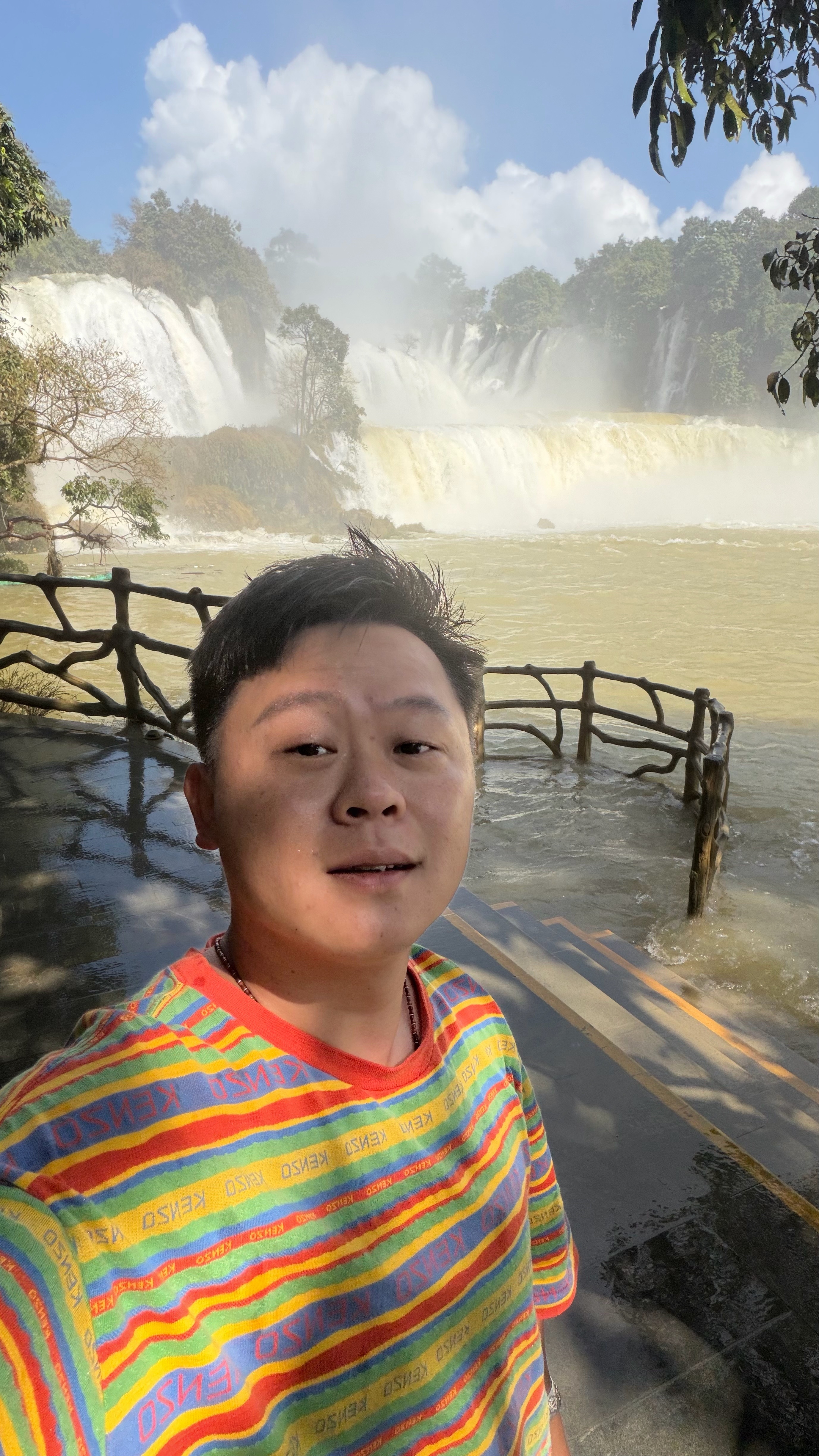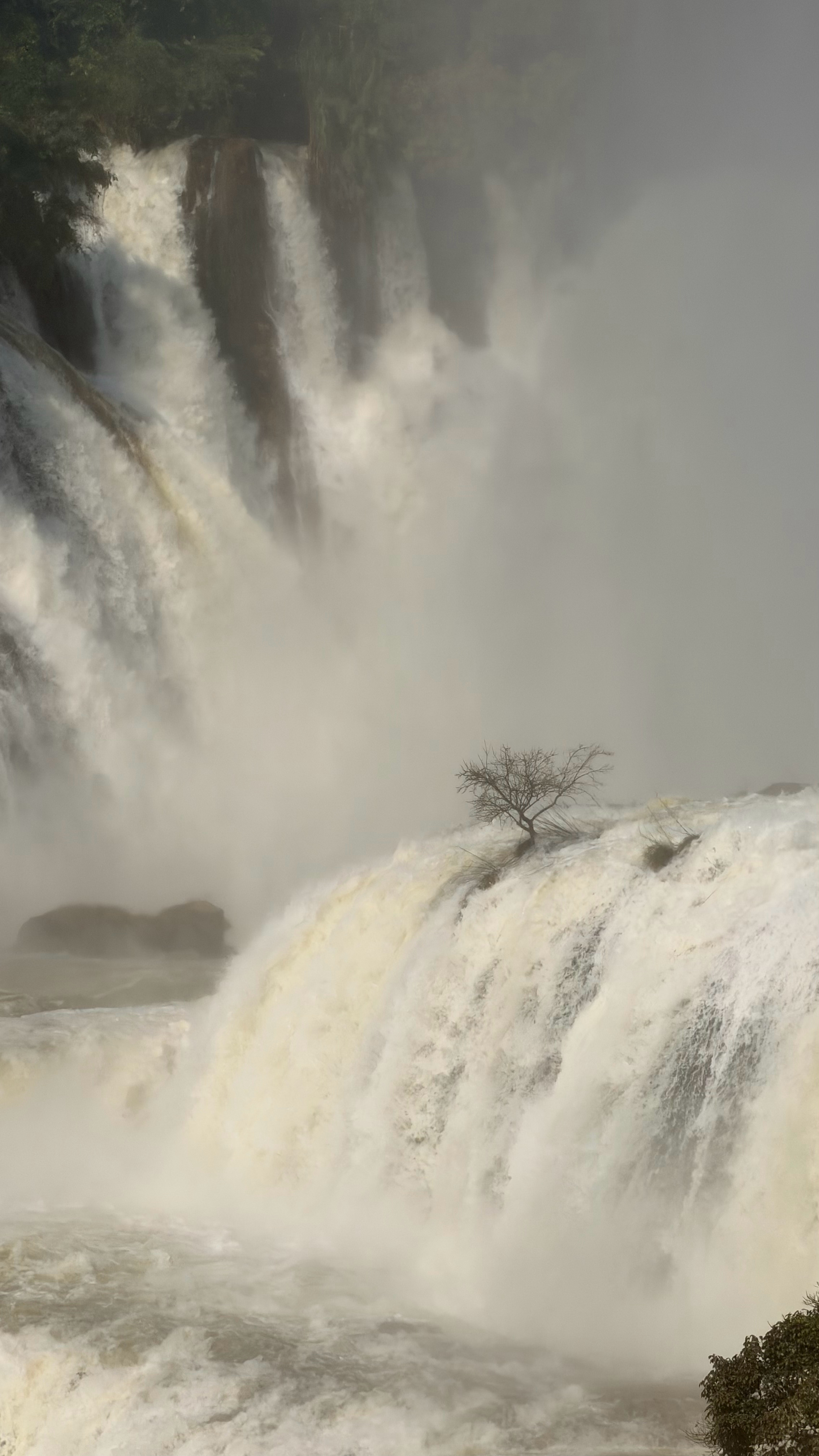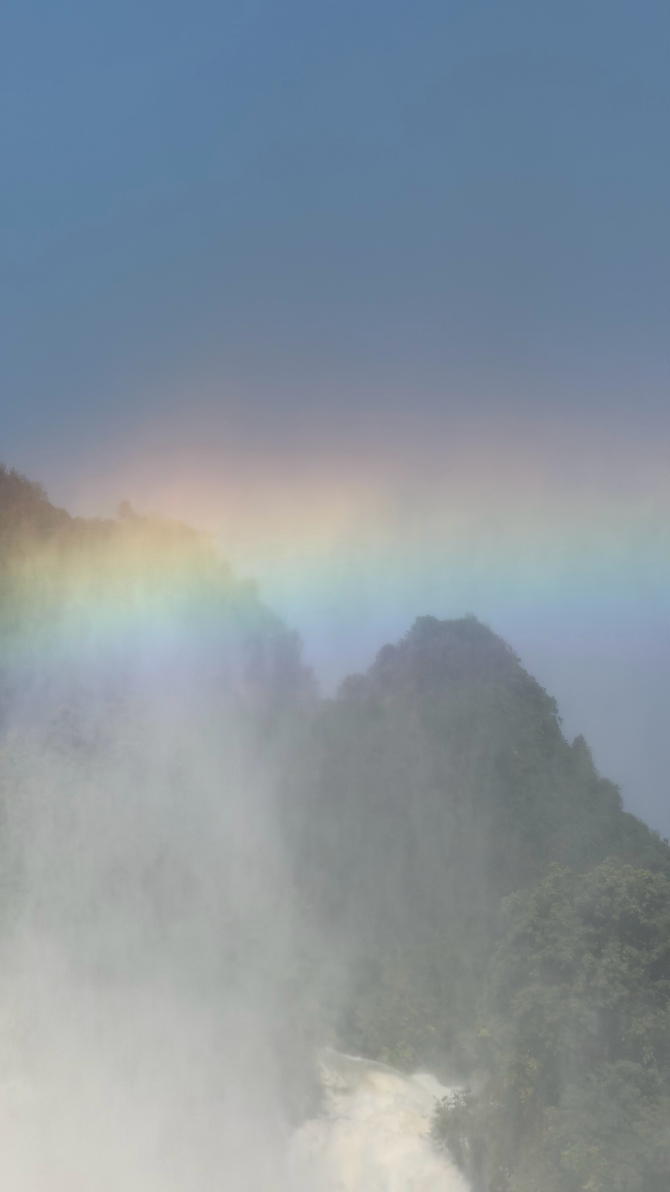 在崇左运气真好,来到昨天瀑布时,不仅蓝天白云,还偶遇了彩虹,其实不管去哪里,不管什么天气,咱们心态放好就行,说不定转角就有惊喜。这条中国最美亚洲最大的跨国真的是爱漂亮了,溅起的水花使劲往脸上砸,今天的面部补水工作已完成。广西旅行崇左旅游德天跨国瀑布