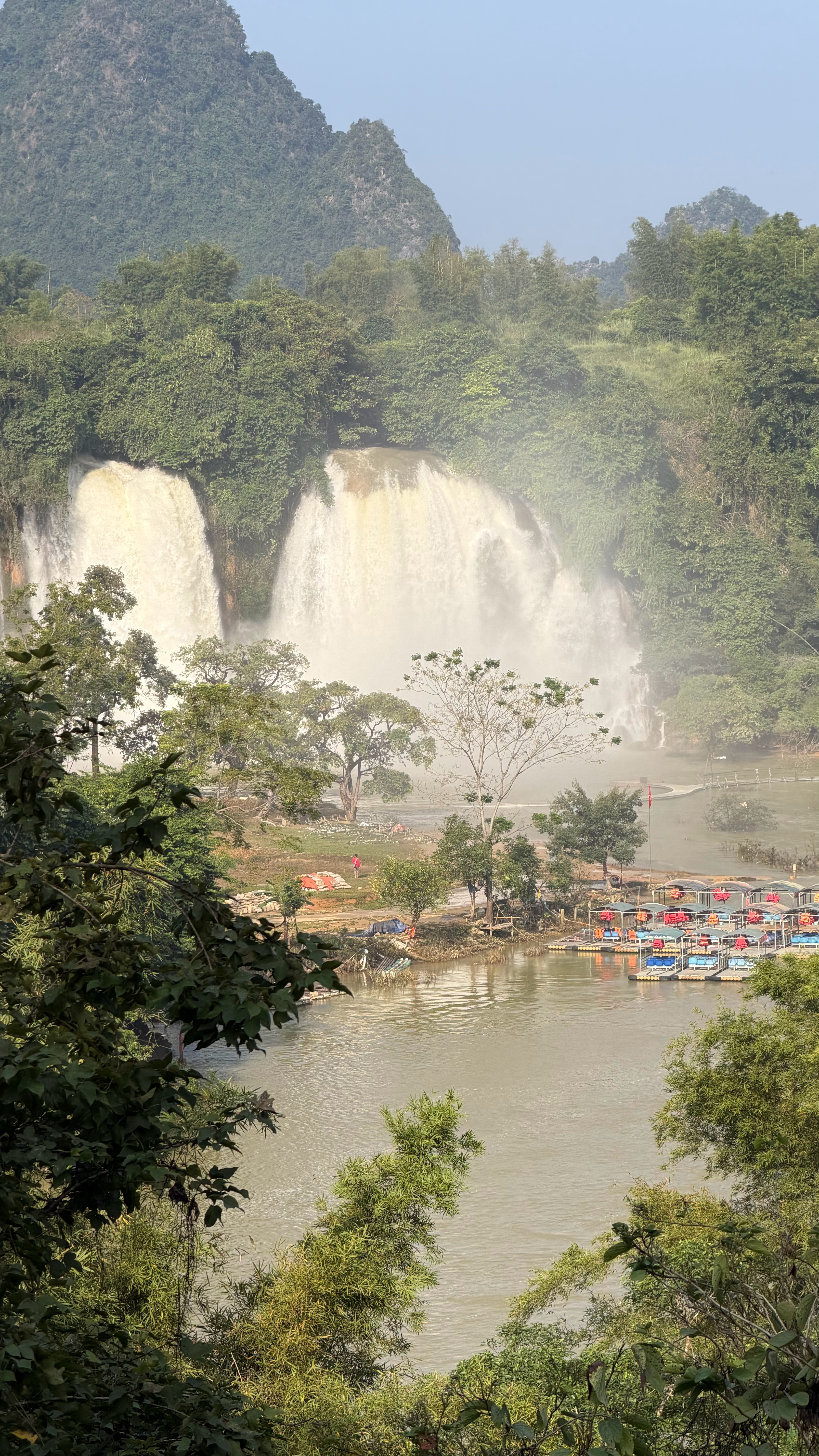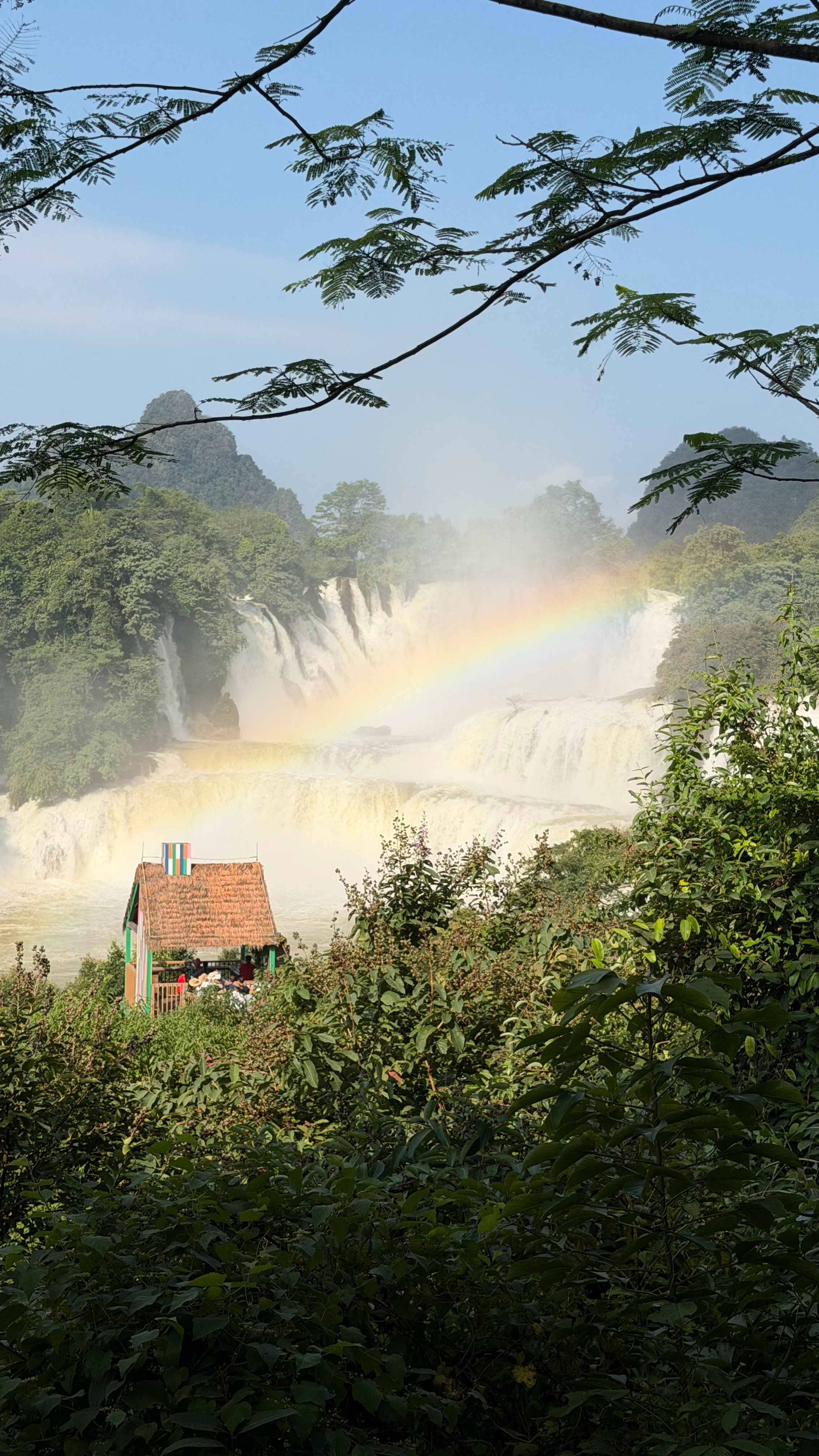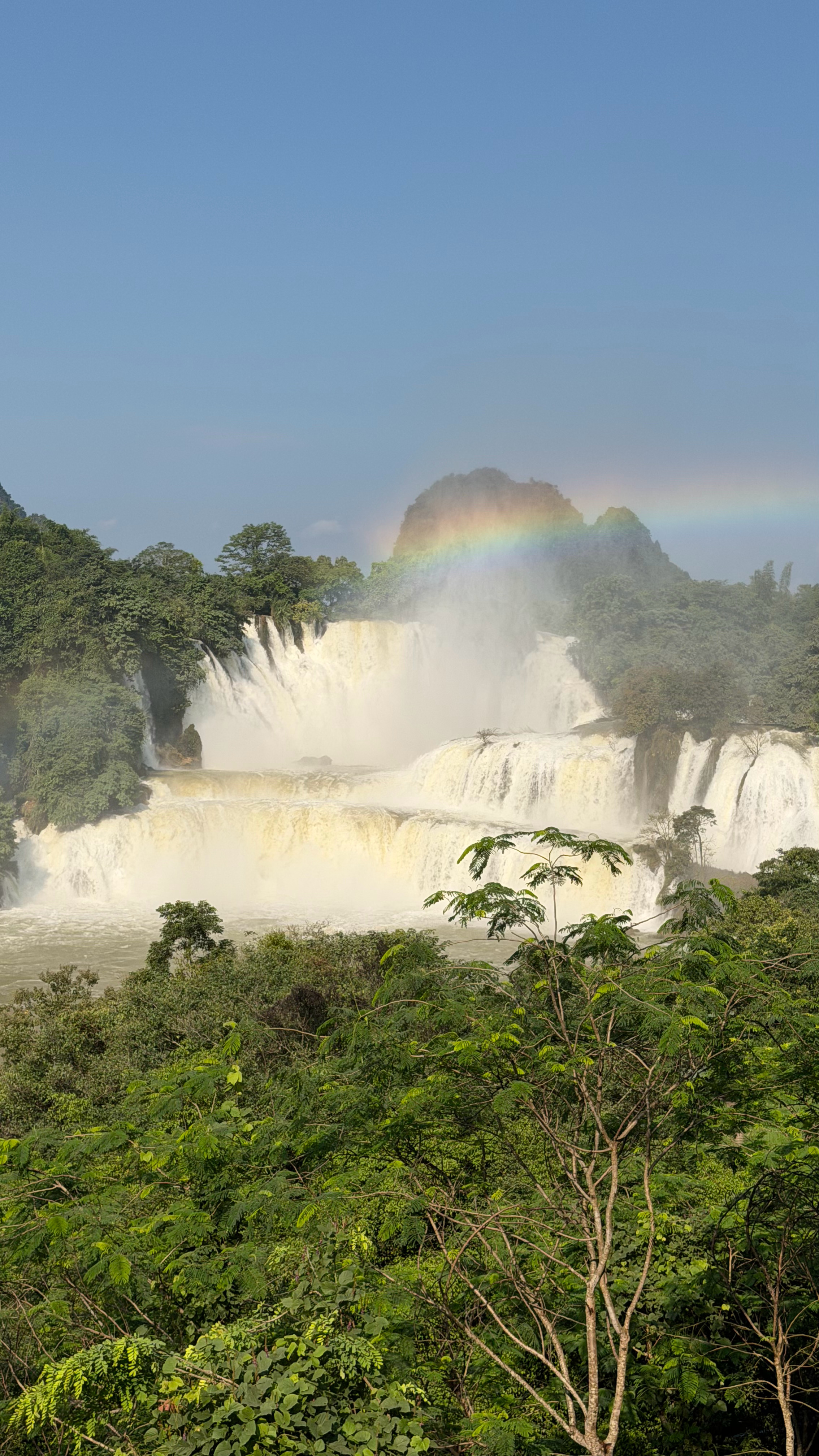 在崇左运气真好,来到昨天瀑布时,不仅蓝天白云,还偶遇了彩虹,其实不管去哪里,不管什么天气,咱们心态放好就行,说不定转角就有惊喜。这条中国最美亚洲最大的跨国真的是爱漂亮了,溅起的水花使劲往脸上砸,今天的面部补水工作已完成。广西旅行崇左旅游德天跨国瀑布