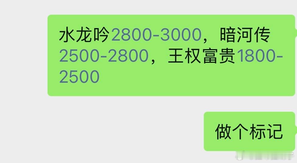 这是看三部目前物料定下来的均集预测,开播之后会动态调整的,有一部区间定的特别大是因为买水惯犯了,我拿不准到底会买多少