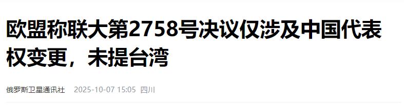 10月7日,欧盟在一份声明中抛出争议性论调,声称联合国大会第2758号决议仅涉及