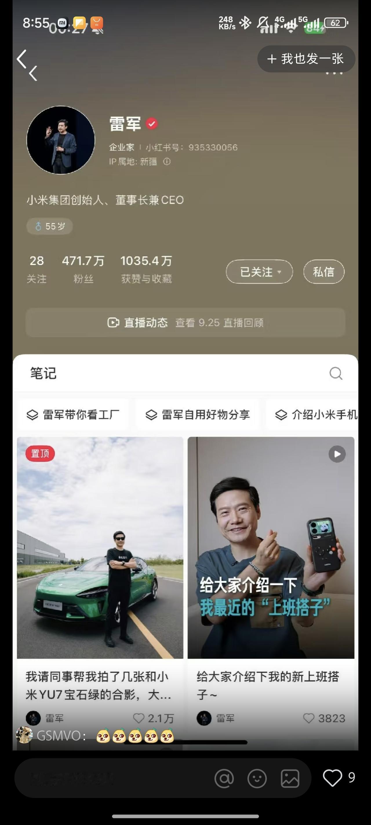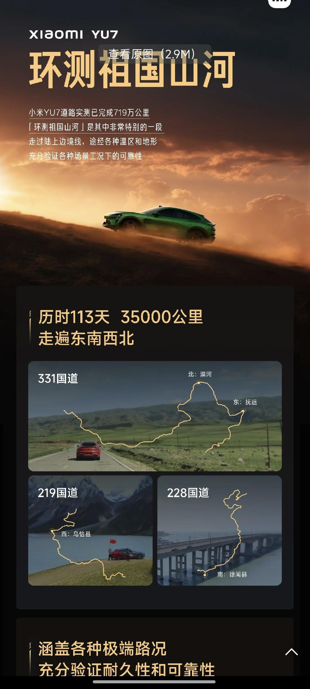 前几天就有新疆网友拍到帕米尔高原下的小米yu9,也就是那辆大型增程suv,也有细心的朋友发现雷总的xhs账号ip已经到了新疆。 今天雷总官宣带队在新疆测试,只不过车辆变成了yu7[柯基]那么问题来了,难道真有人相信以小米这样大规模的路测和完整的冬夏测试,连yu7绕国境线的路书都跑出来的车企,会为了已经上市的车创始人带队去一次新疆?所以可以大胆的说,这次测试的主角就是yu9,yu7只是幌子。 小米汽车 小米yu9 至于还有人借此攻击yu7的测试的,我只想说真的不怕回旋镖到自己身上吗[看][看]1500万公里测试里程哦[看][看]