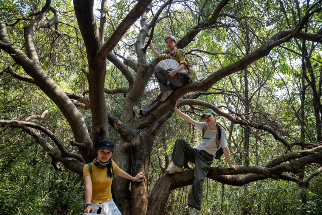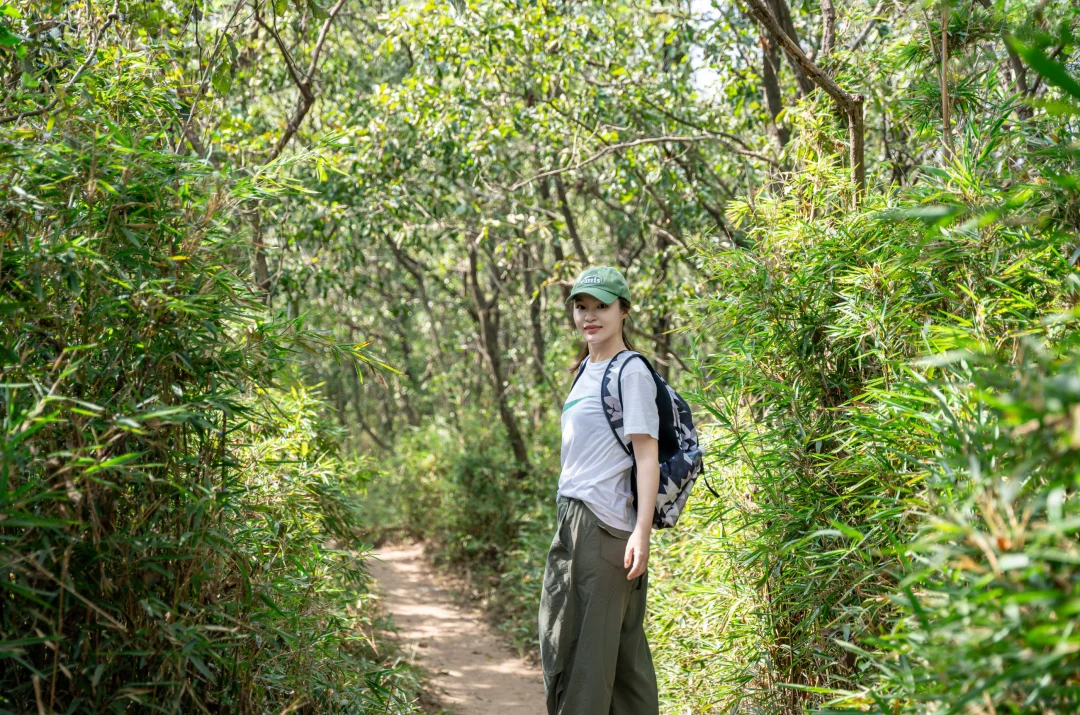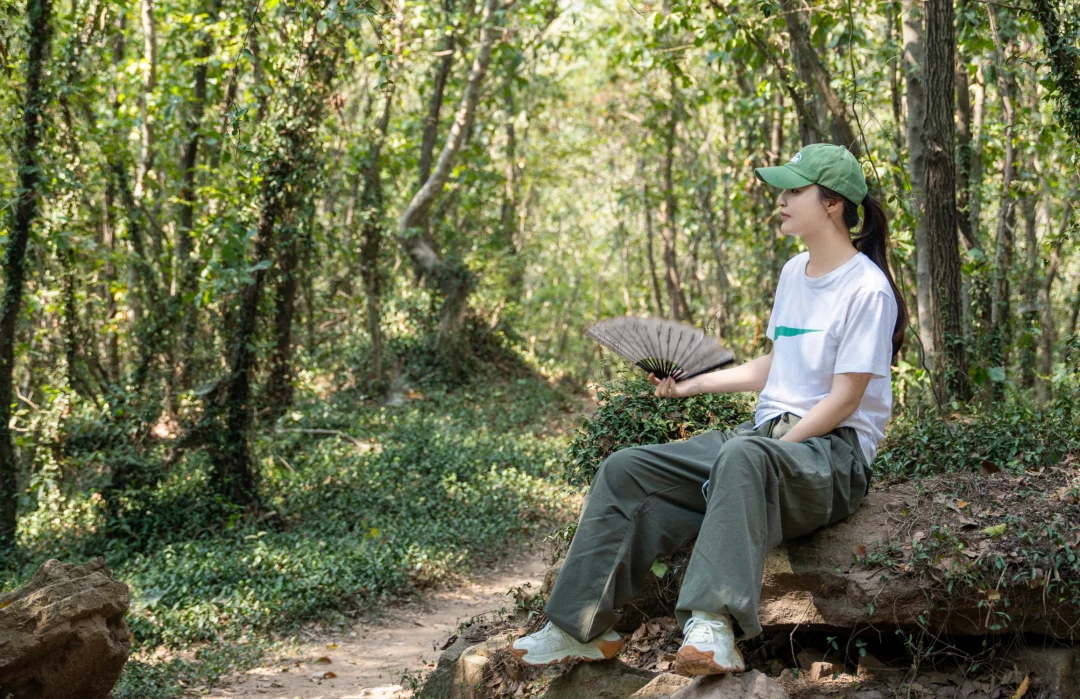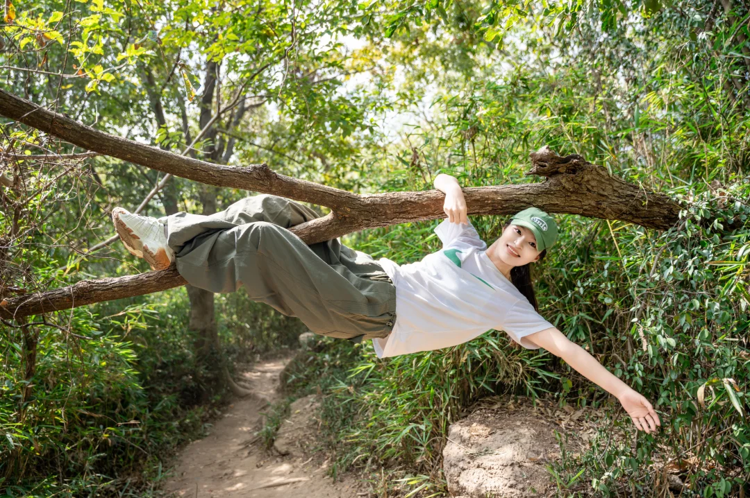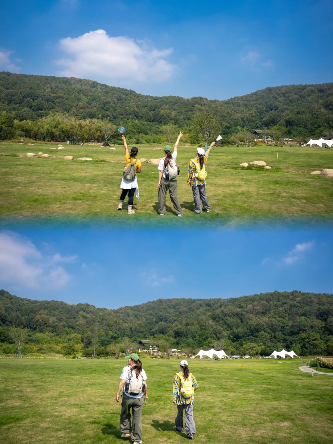 • 穿搭:浅色系外套(米色、浅咖,和秋日景色搭)+ 长裤(防蚊虫,也能防树枝勾到)