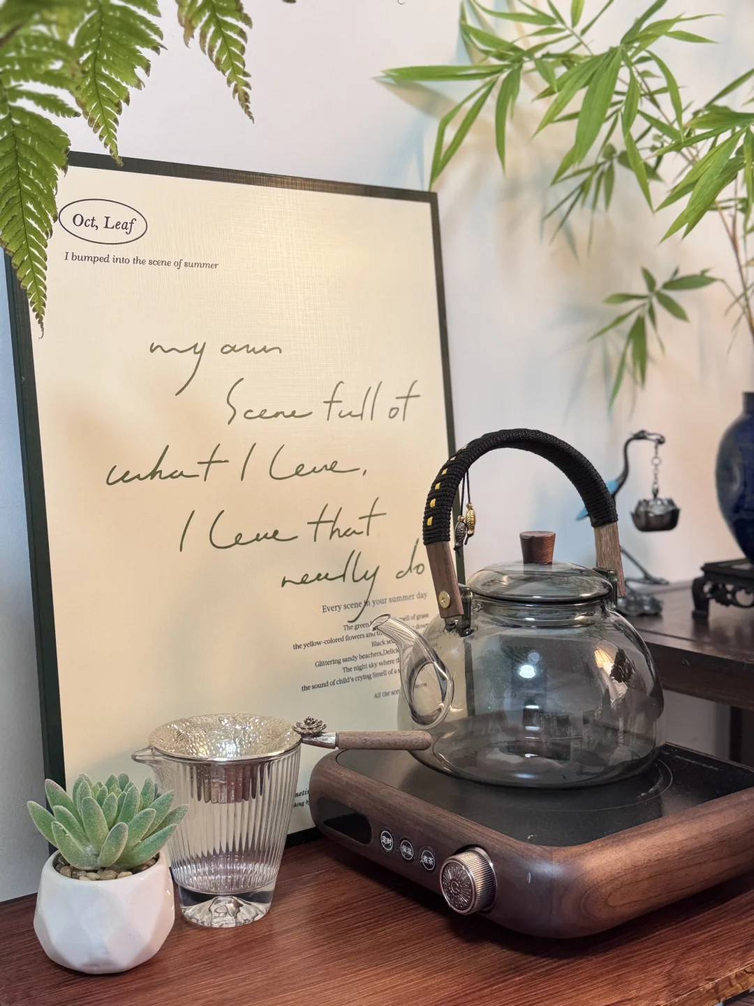 我的书桌,桌上绿植嫩叶舒展,生机勃勃;花瓶中的花朵让我看了心生欢喜,笔记本电脑可以随时记录我的想法,输出我想要表达的文字,泡上一杯茶,捧起一本书,整个人沉浸其中,内心是温暖而安定的,一天的疲惫在这里被洗刷,整个人开始丰盈,就像干瘪的葡萄吸饱了水,鲜灵灵的。