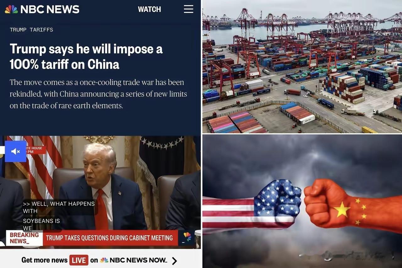 中国不吃你这一套! 特朗普又喊对中国征收100%关税。 可惜,你的对手是中国。 中国不是被吓到的。 不管是贸易战、科技战,中国现在就是四个字,奉陪到底。 中国已经不是过去的中国。 美国还是之前那个美国。