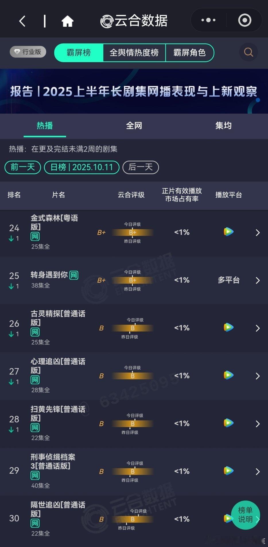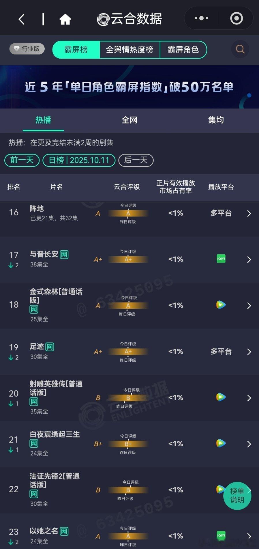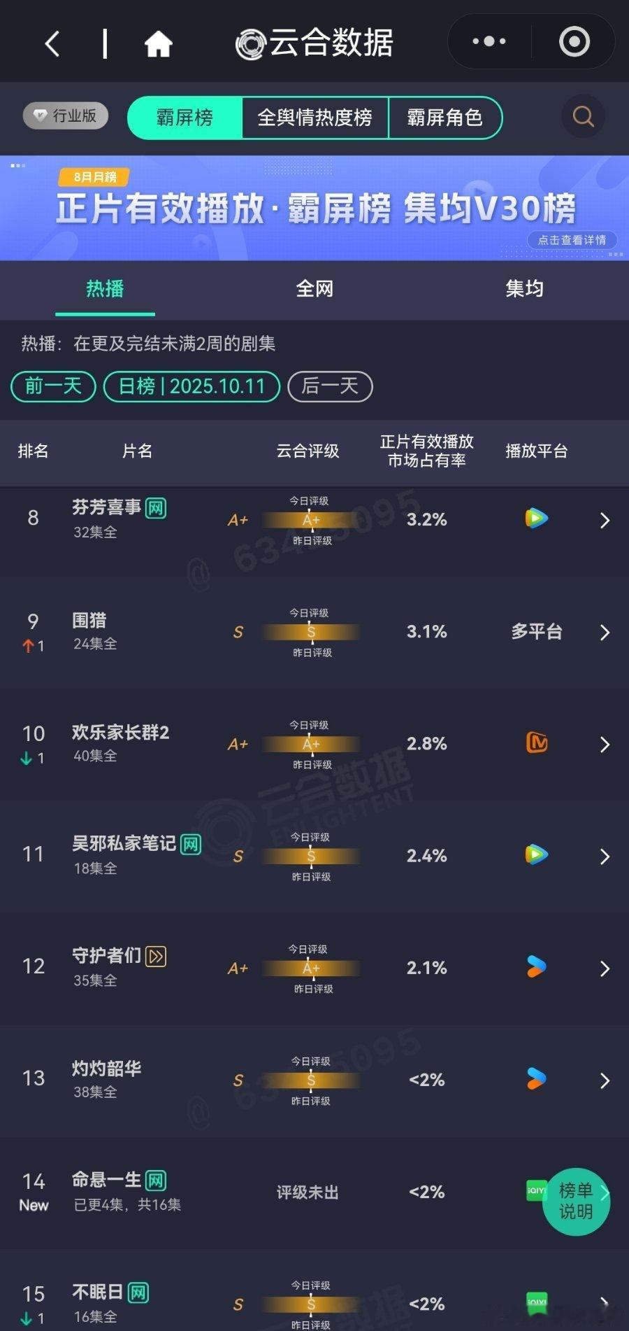 10月11日云合播放占比云合