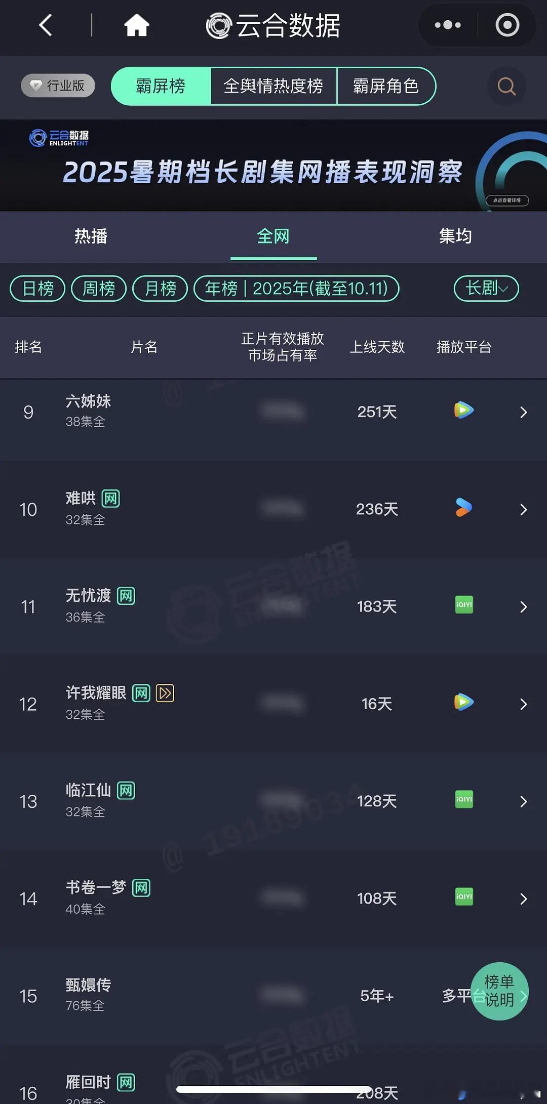 10.11 云合 许我耀眼35.6% 年榜已经升到12