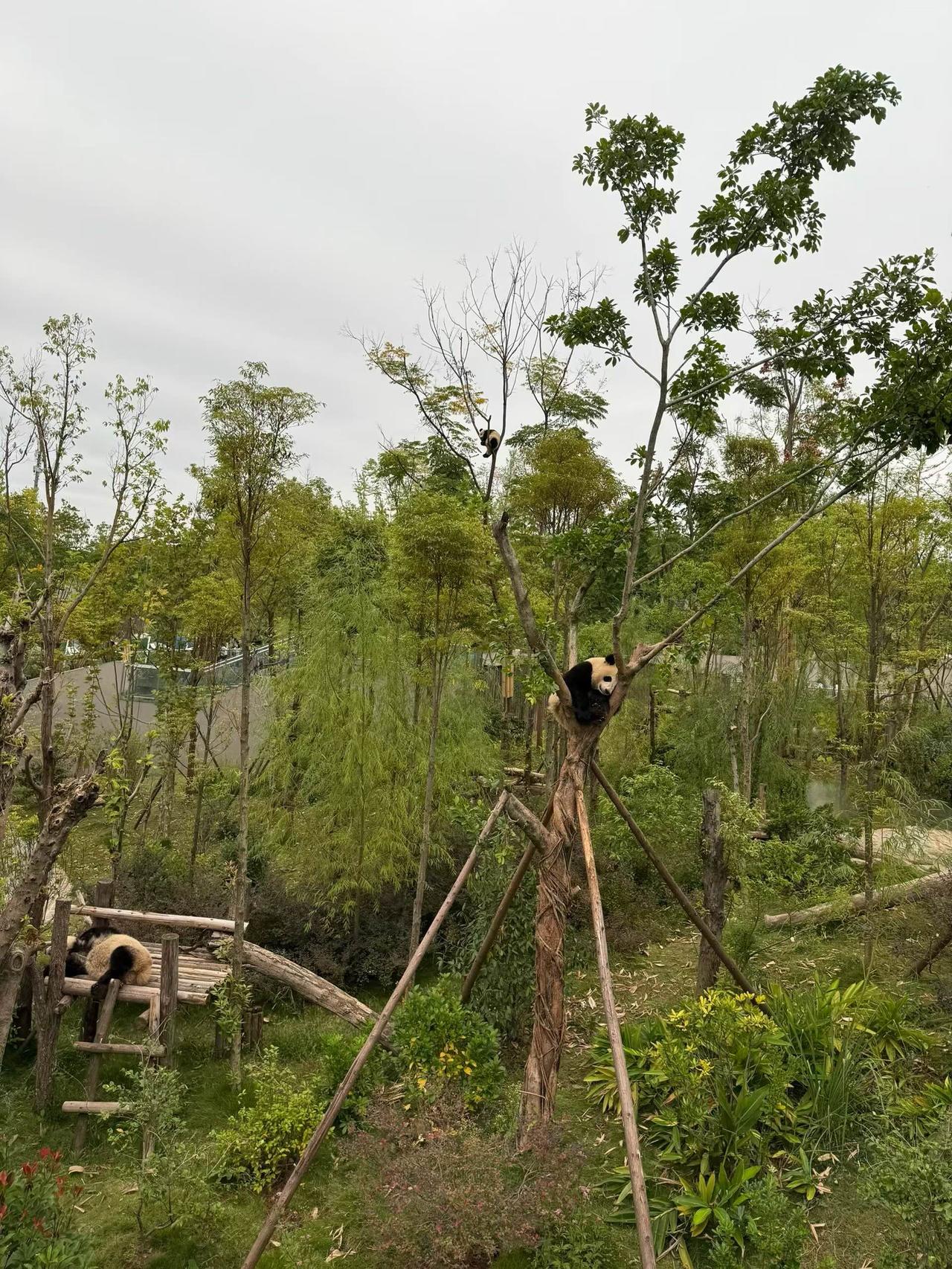 前几天带着孩子去了成都熊猫基地,一进园就被这片“熊猫乐园”惊艳到了,你看那树上,